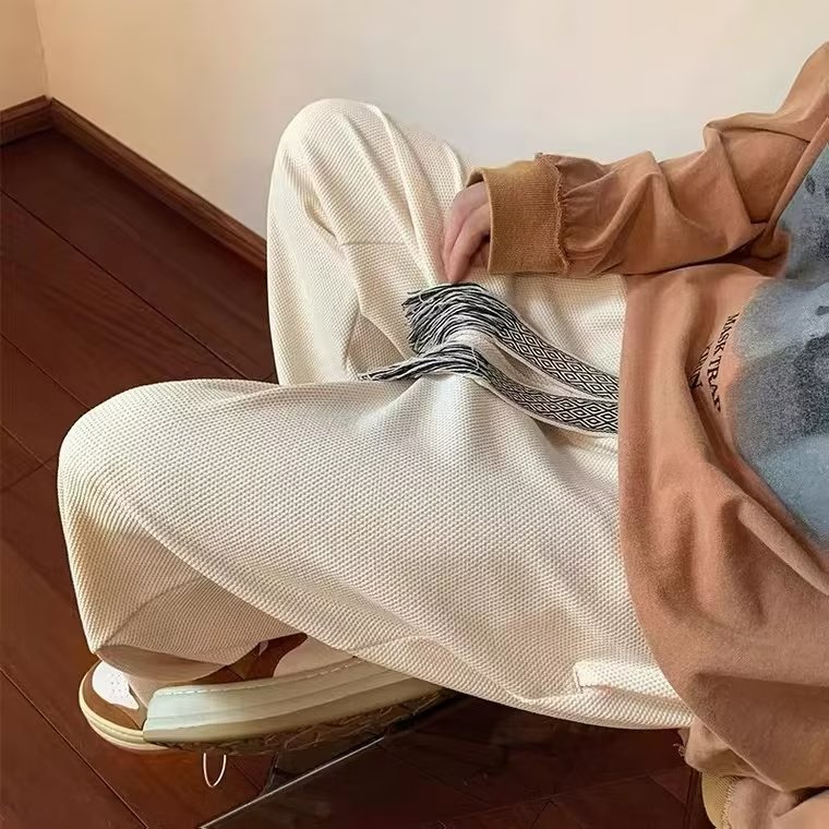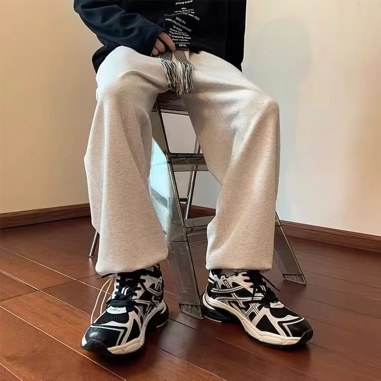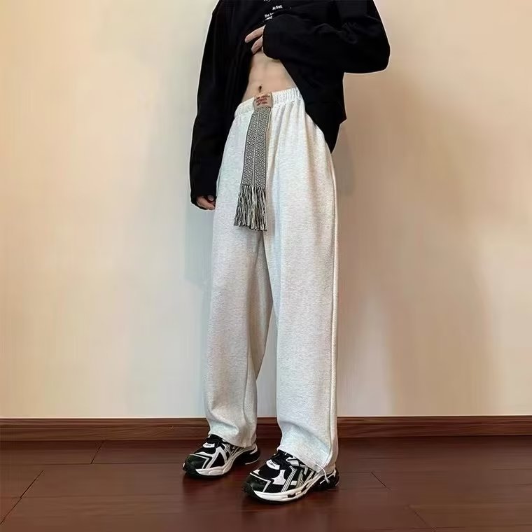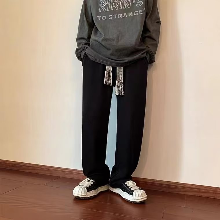 休闲长裤男春秋季宽松直筒阔腿拖地裤美式高街vibe黑色裤子男
