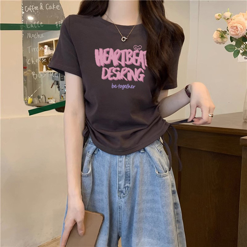 短款纯色T恤女夏装韩版绑带小心机露脐学生短袖体恤修身上