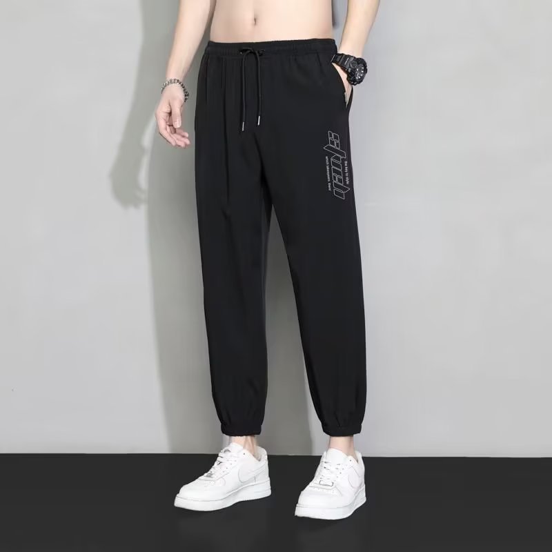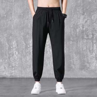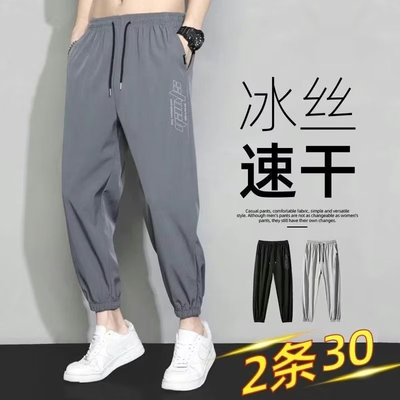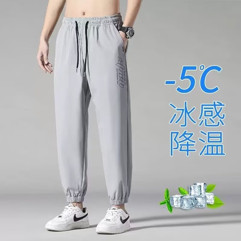 夏季冰丝干活穿的裤子男宽松束脚裤速干九分运动裤男大码休闲裤潮
