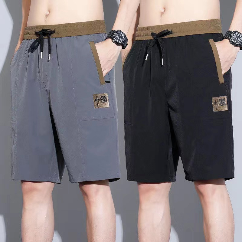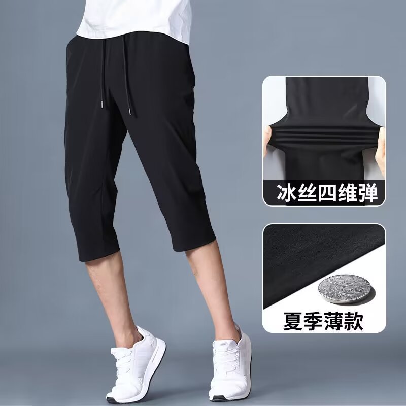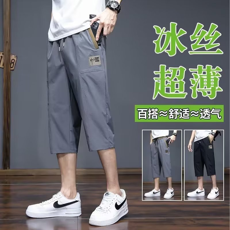 夏季冰丝七分裤男士直筒宽松男款休闲薄款男装短裤中国刺绣