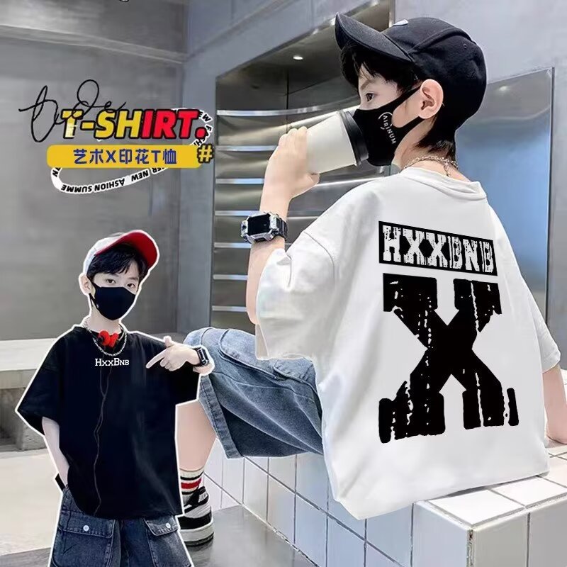 男童短袖棉质T恤新款夏季宽松中大童装卡通印花t儿童半袖体恤