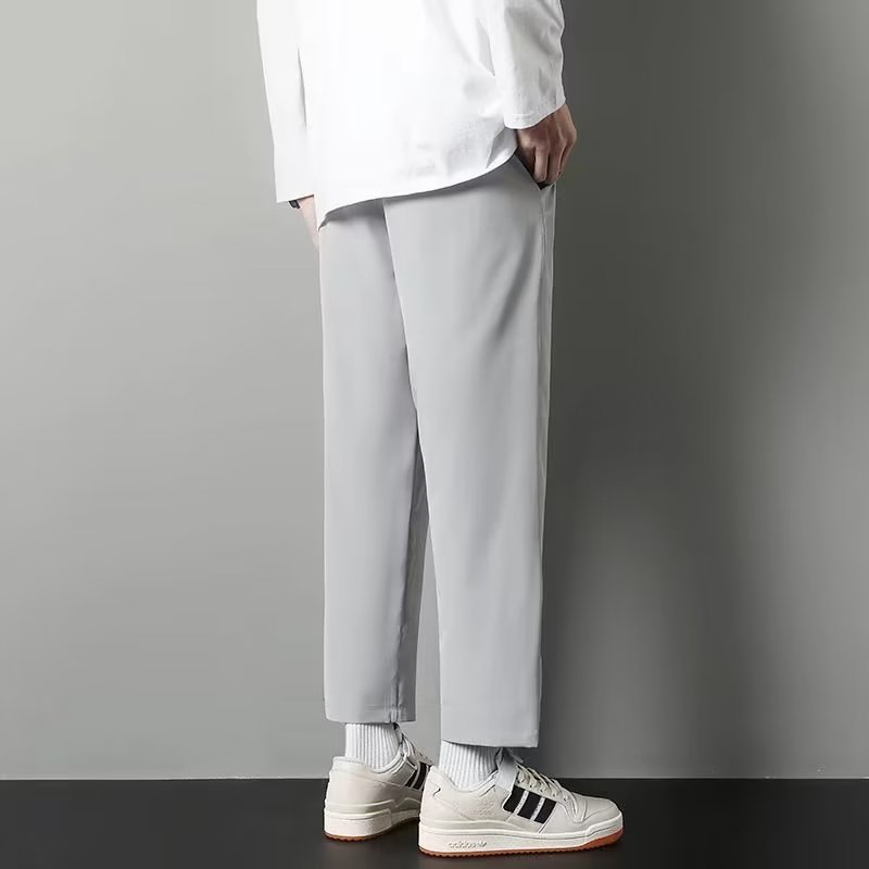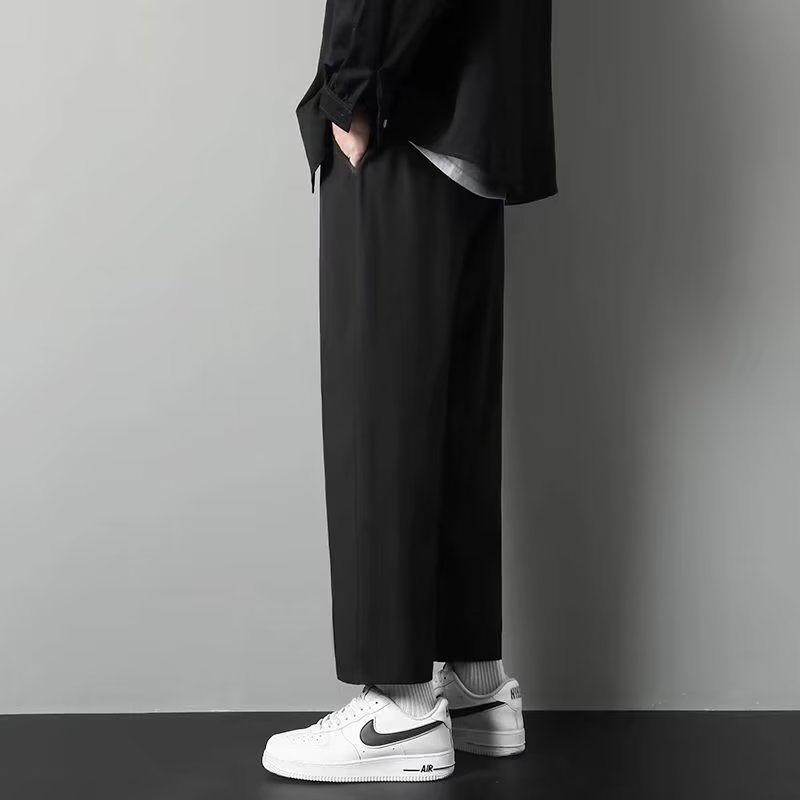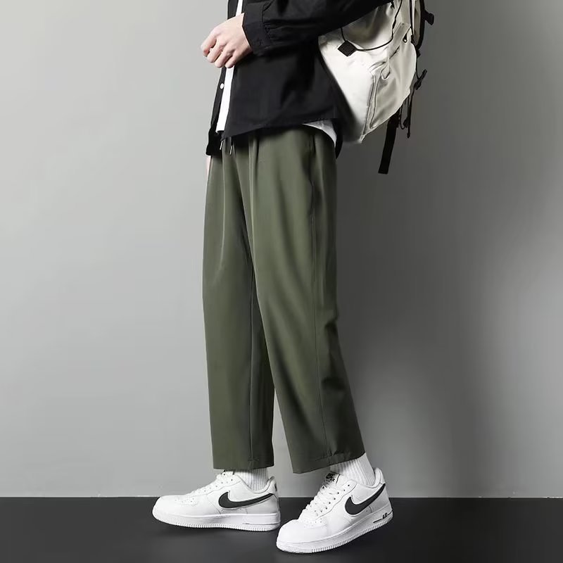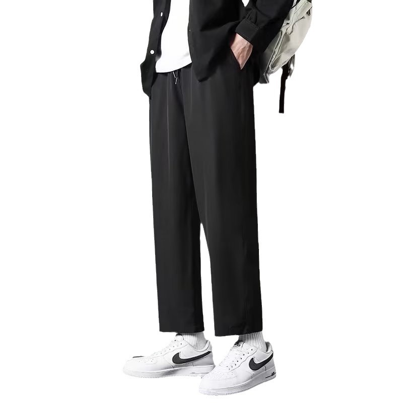 夏季薄款冰丝干活穿的裤子男直筒裤宽松九分裤学生纯色阔腿休闲裤