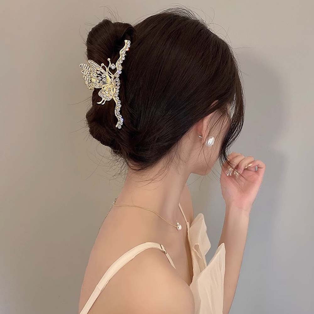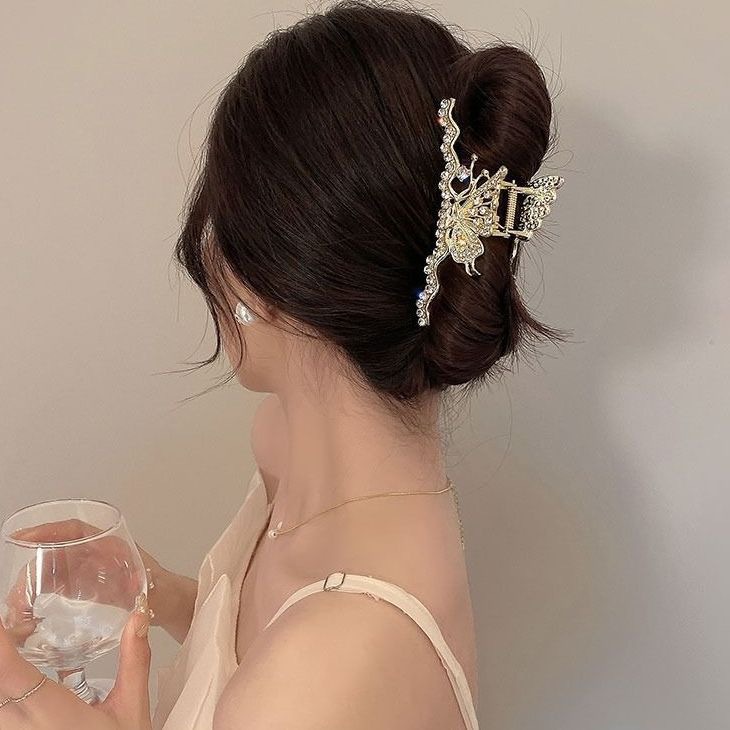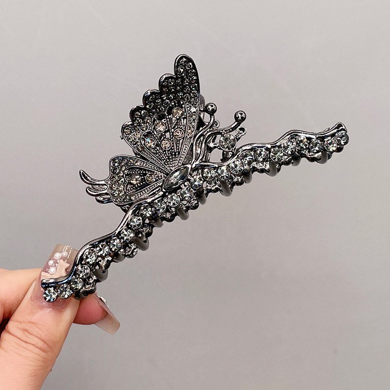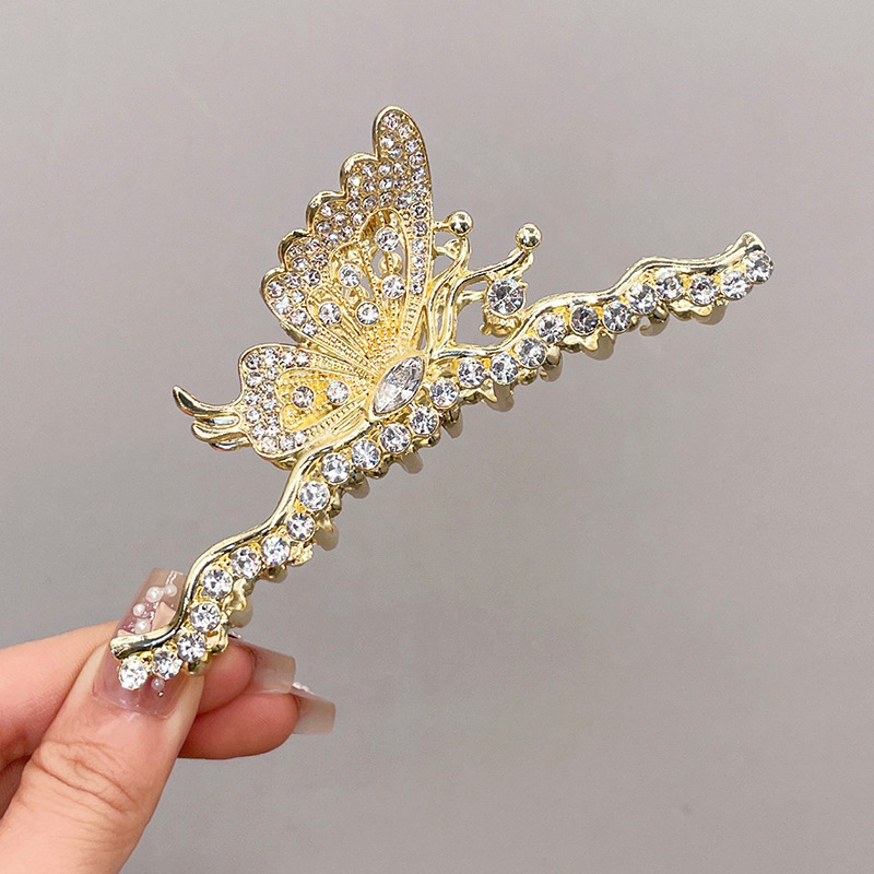 高级感轻奢金属水钻蝴蝶抓夹女后脑勺盘发夹爪夹鲨鱼夹子头饰发卡