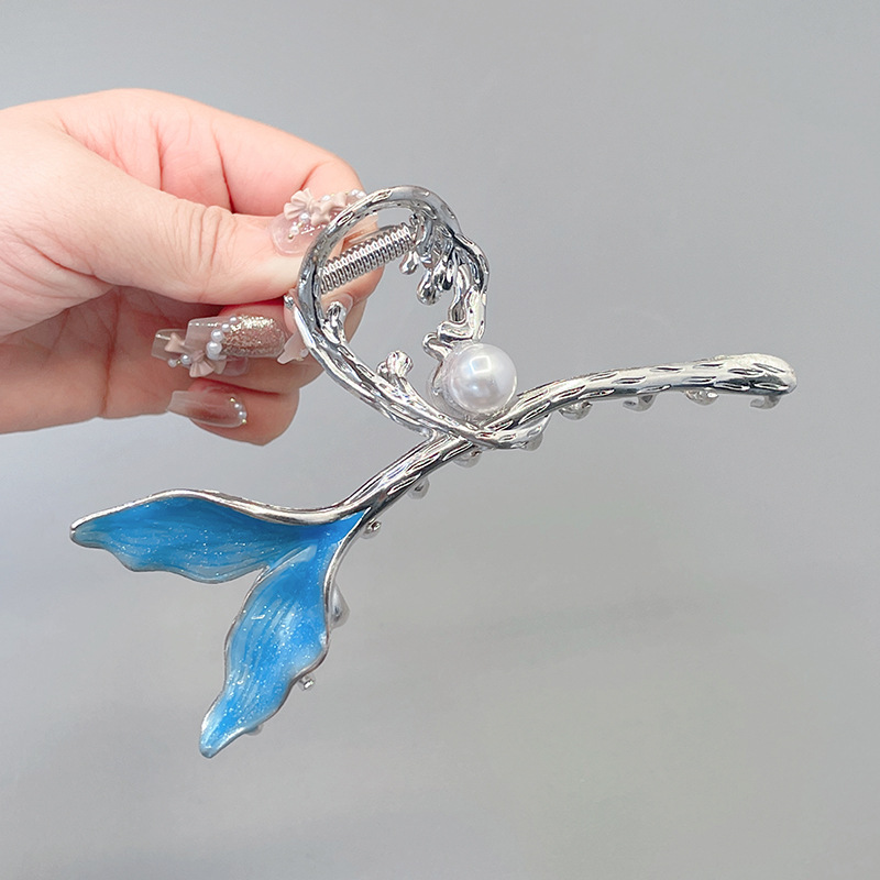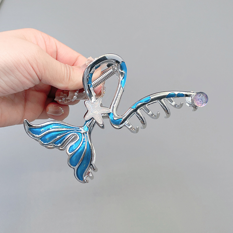 超仙网红蓝色鱼尾简约大号抓夹优雅气质后脑勺盘头发饰精致发夹