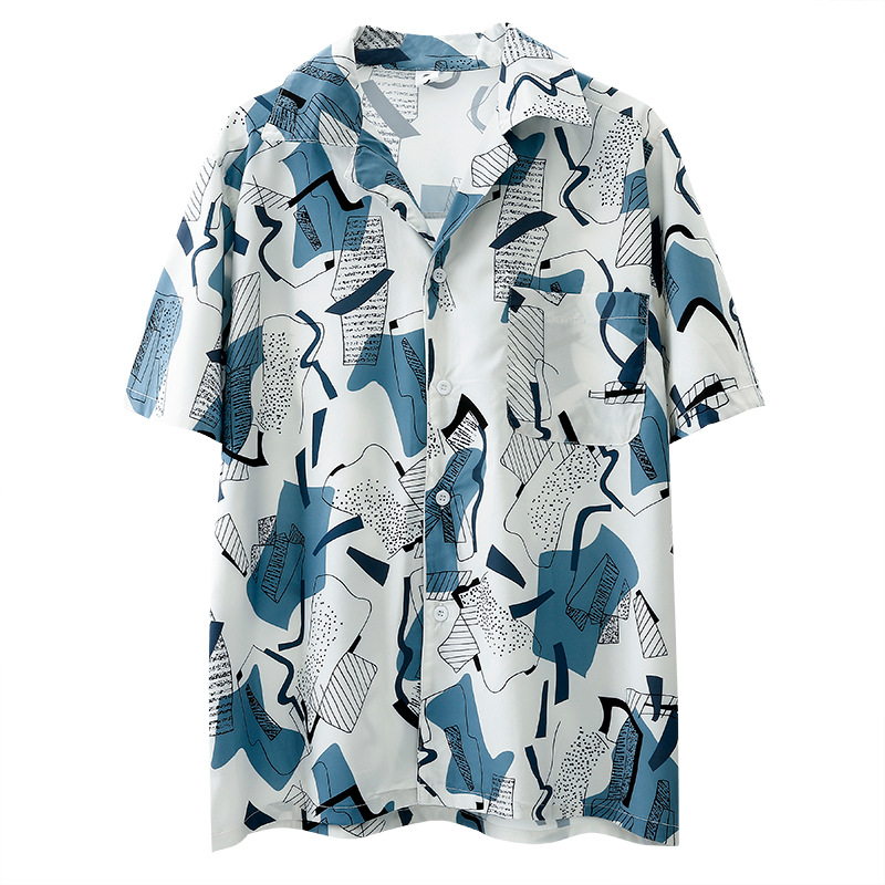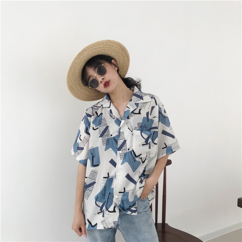 春夏韩版大码胖mm花衬衫女设计感小众短袖女装时尚雪纺衬衣