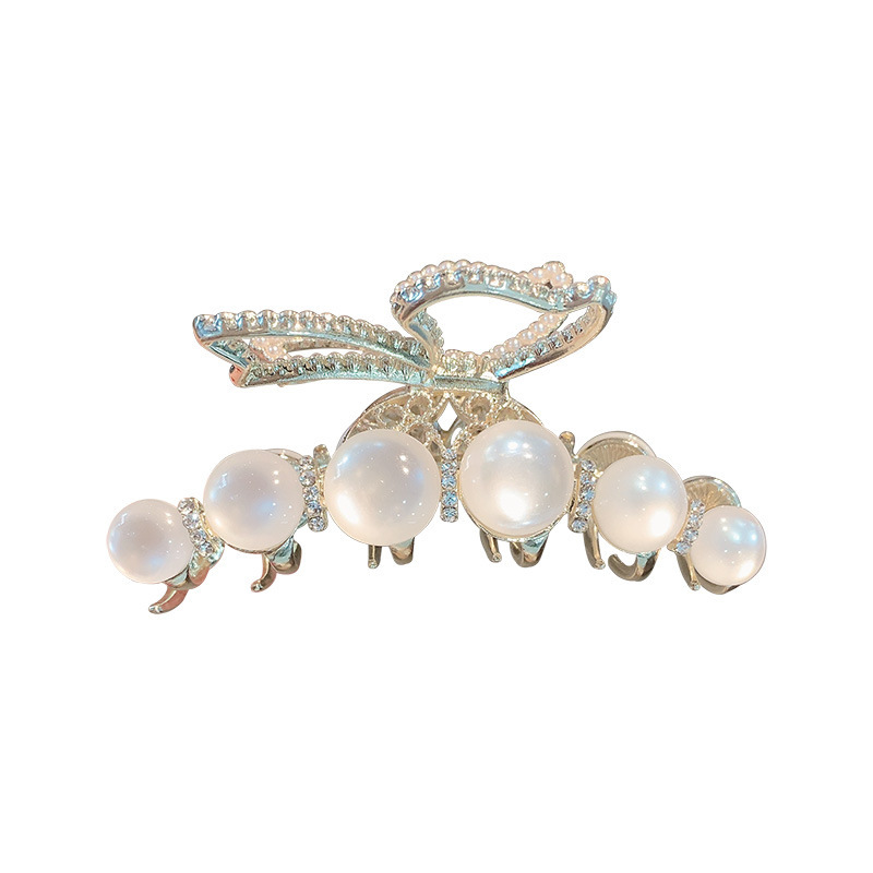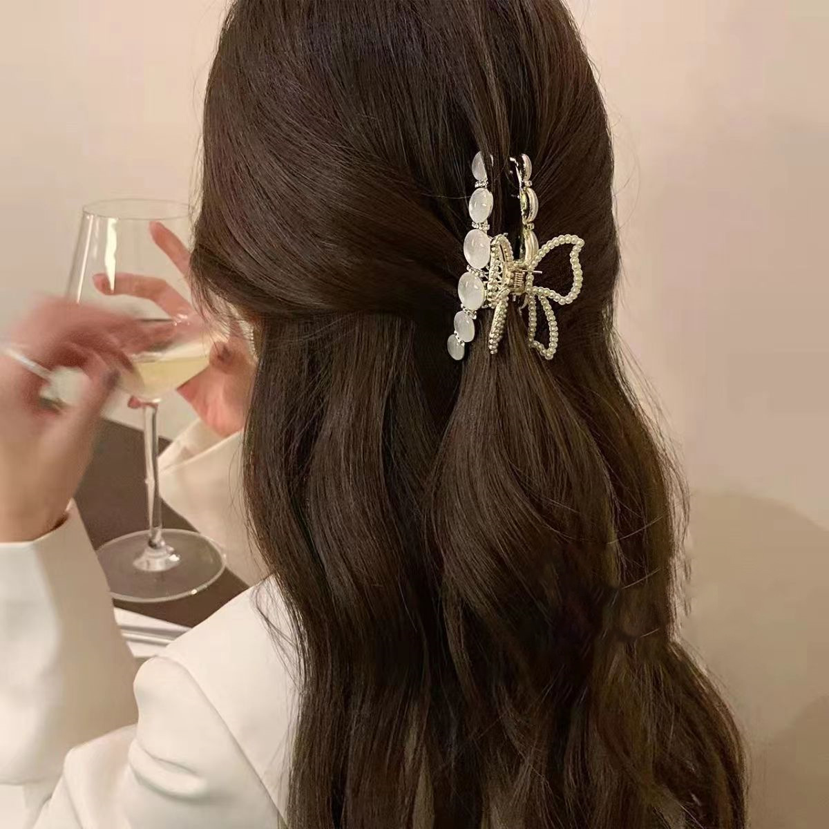 气质猫眼石抓夹后脑勺盘发夹子简约中号高级感鲨鱼夹蝴蝶结头饰女