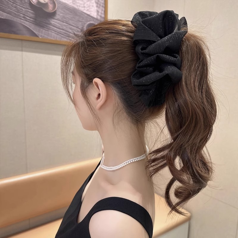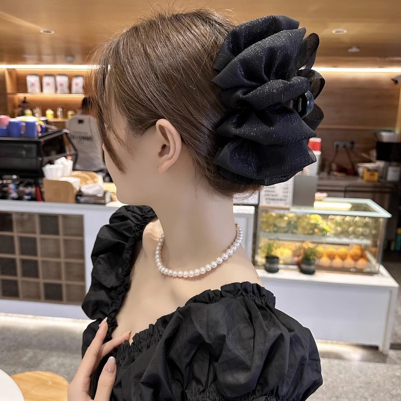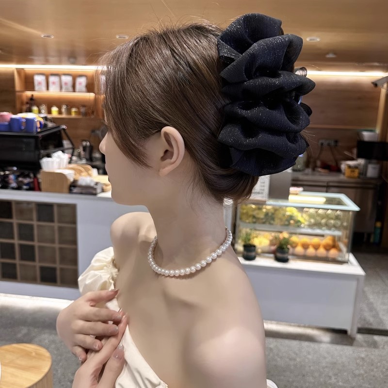 亮丝双面泡泡纱发夹盘头鲨鱼夹超大号抓夹后脑勺盘发夹子