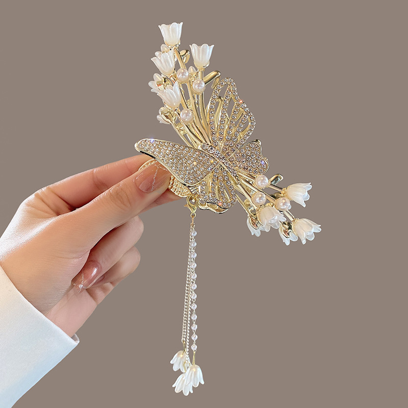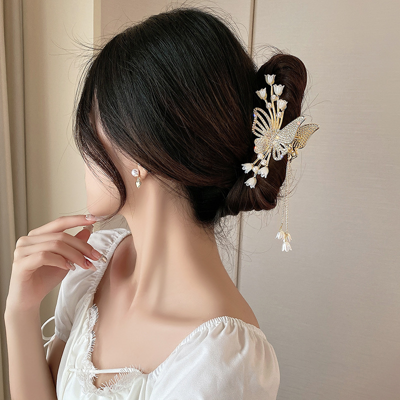 花朵蝴蝶流苏发夹女高级感大号后脑勺抓夹盘发鲨鱼夹发饰春夏新款