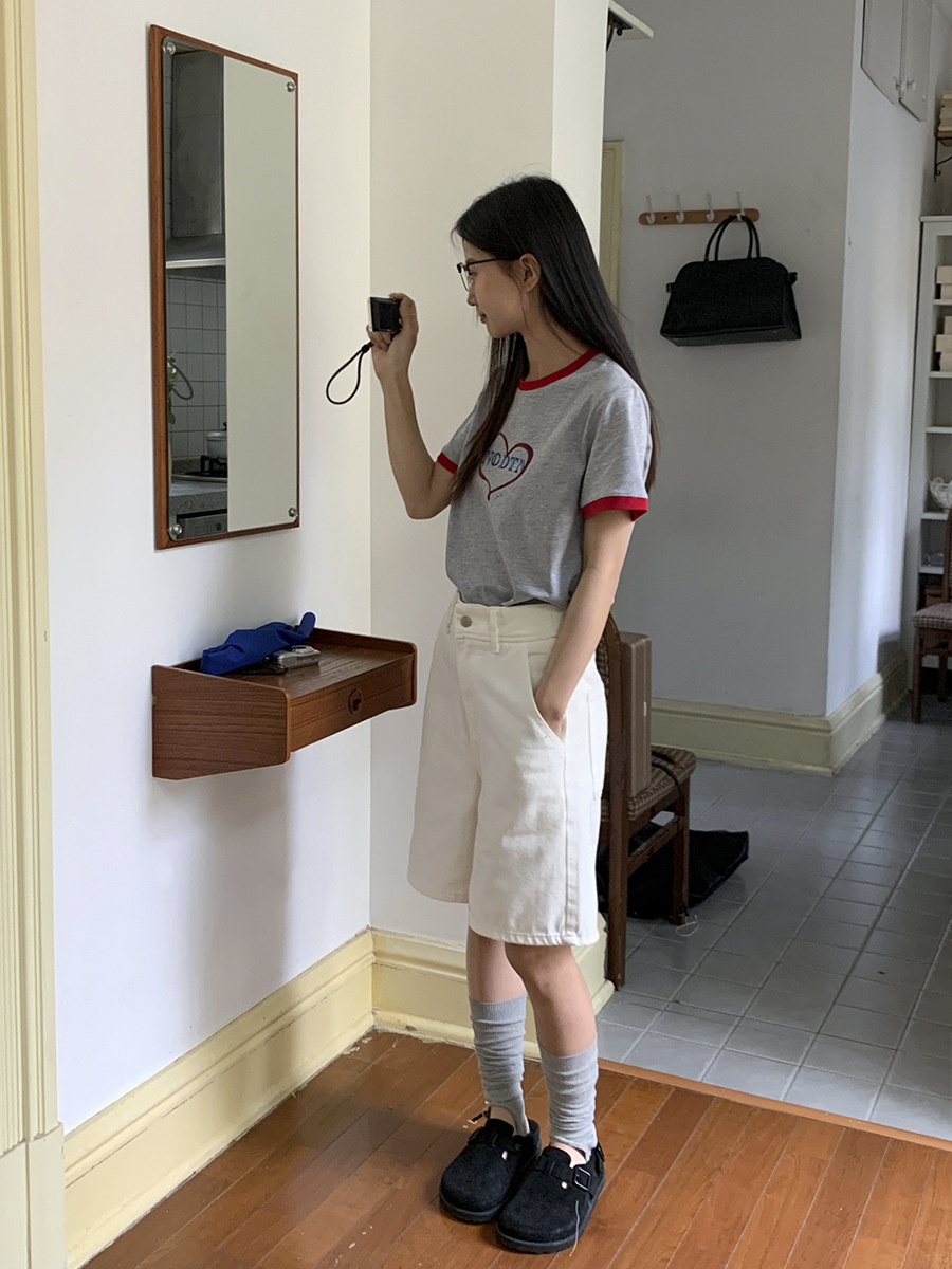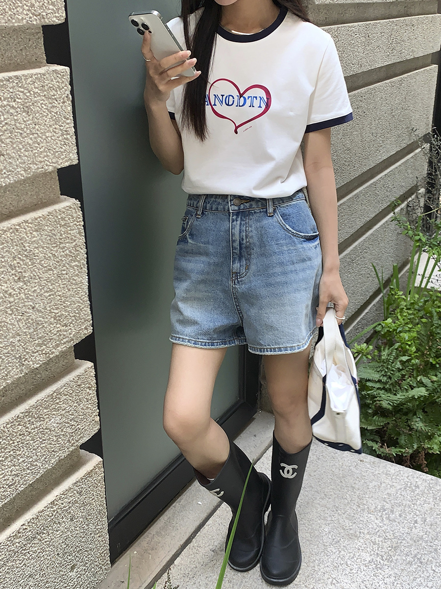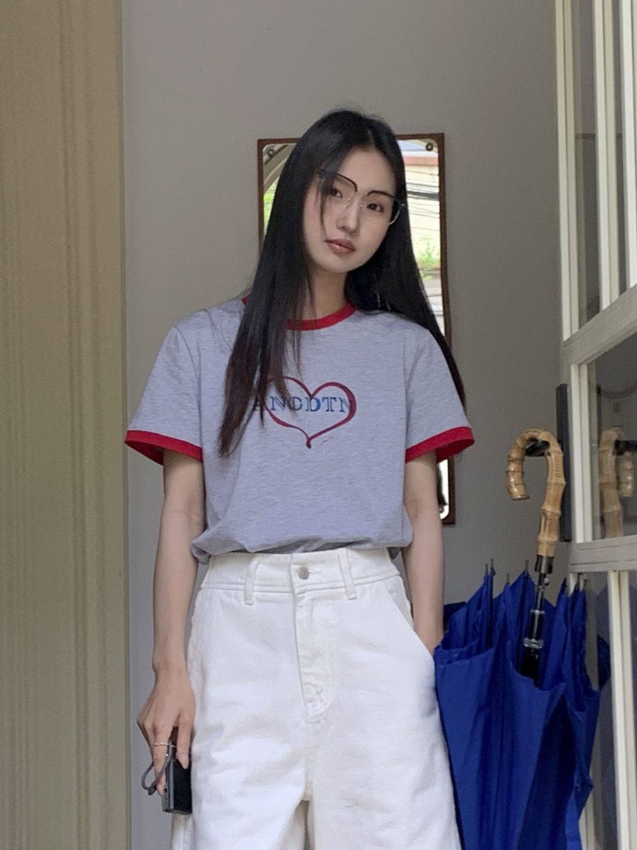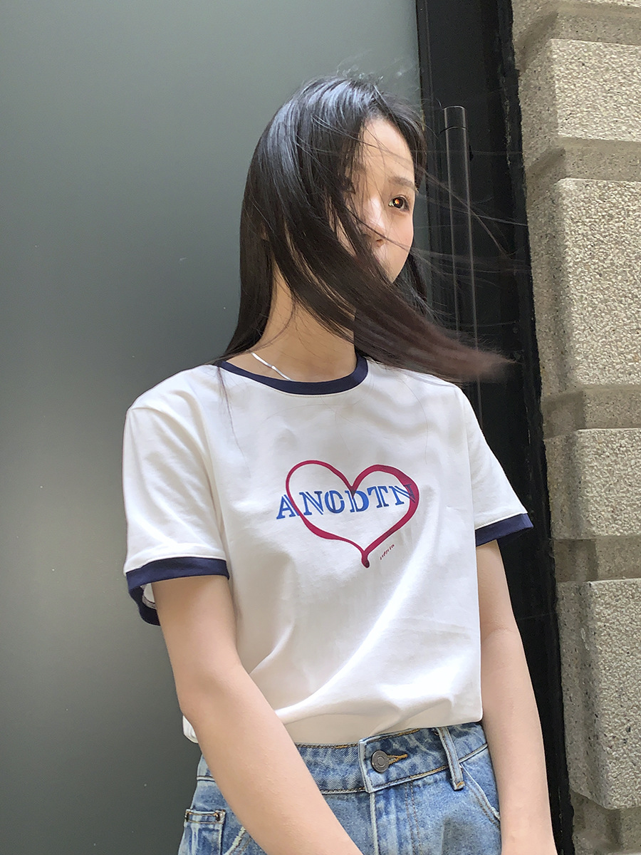 纯棉爱心印花T恤女夏季韩版宽松短袖上衣