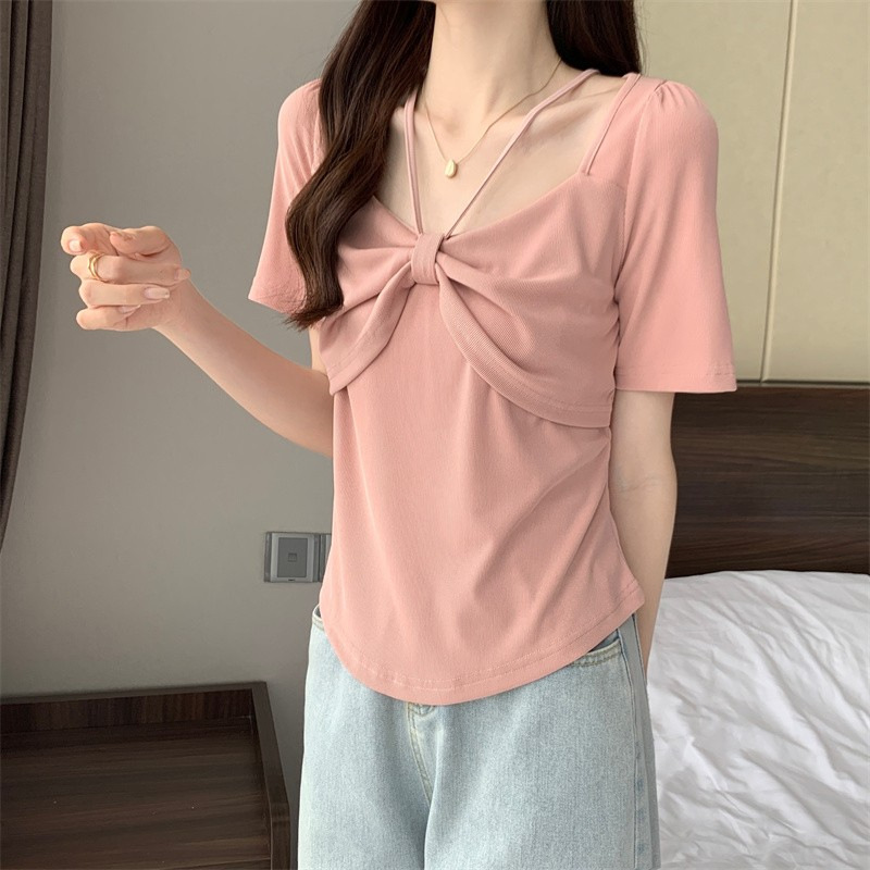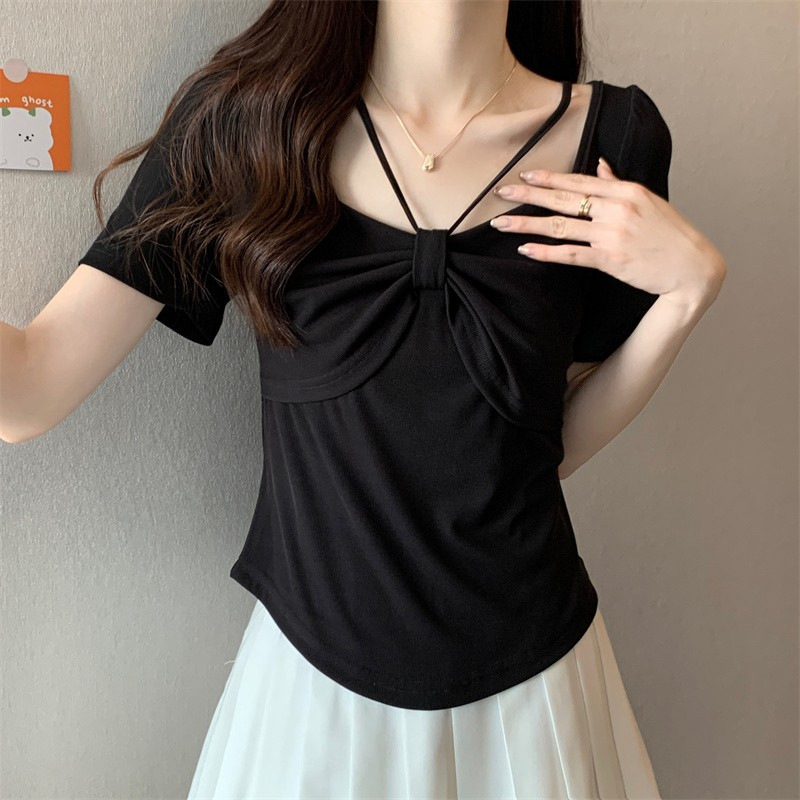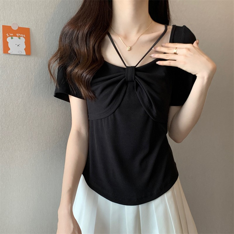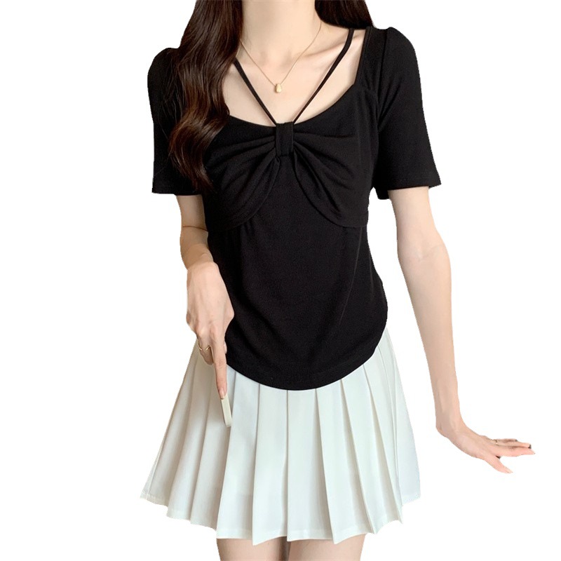 纯欲风辣妹方领正肩短袖T恤女夏季纯棉宽松显瘦T恤