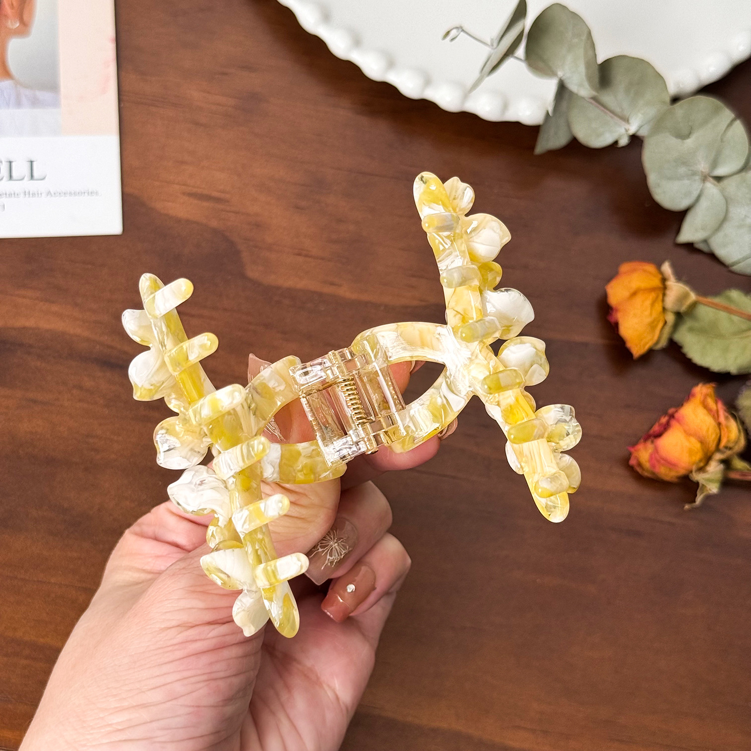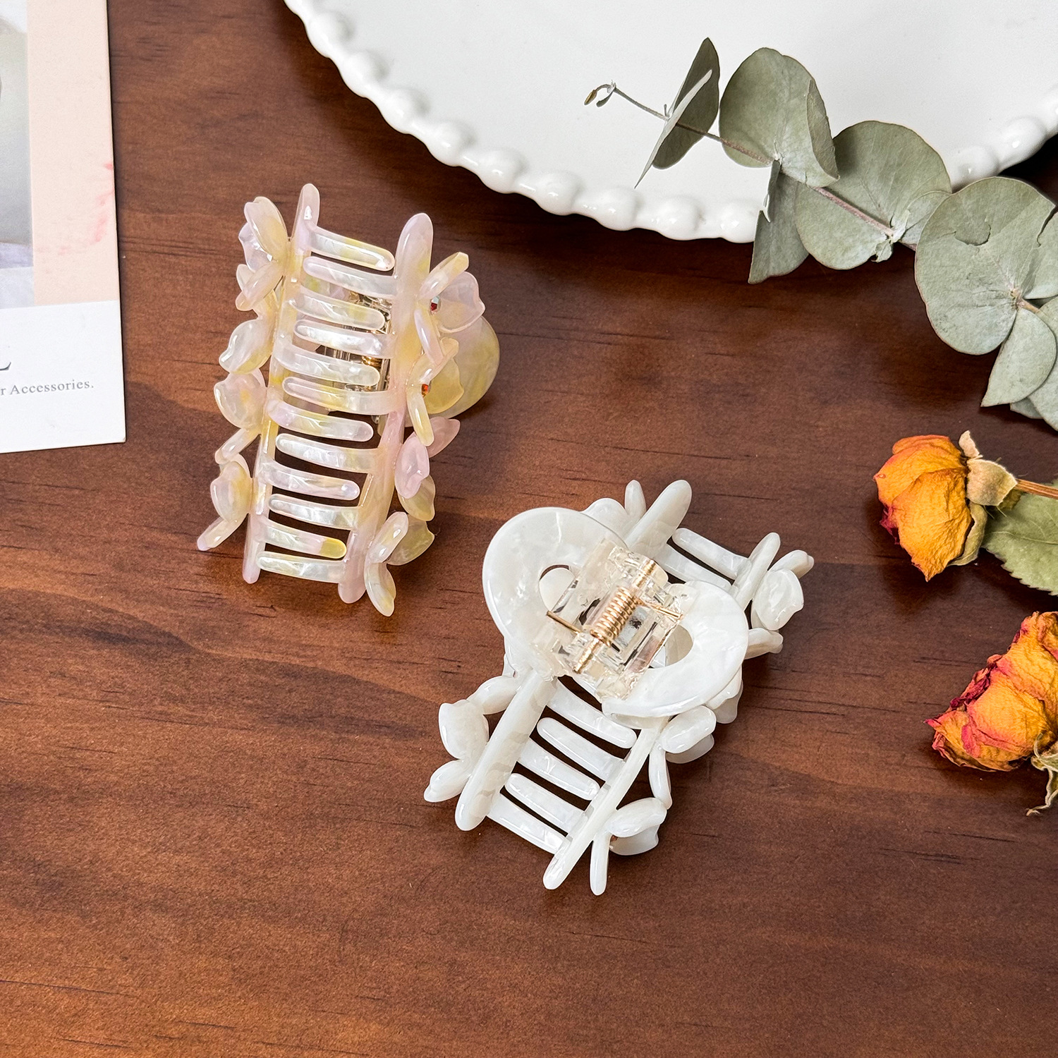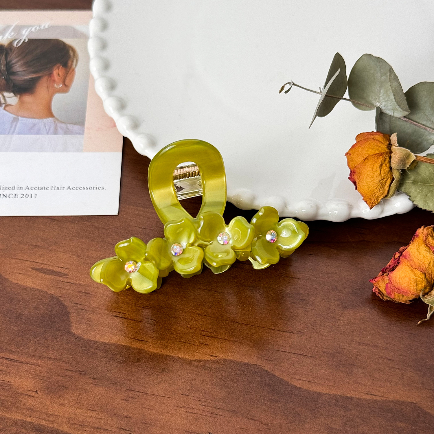 醋酸板材花朵抓夹高级感镶钻发夹中号盘发鲨鱼夹百搭发饰
