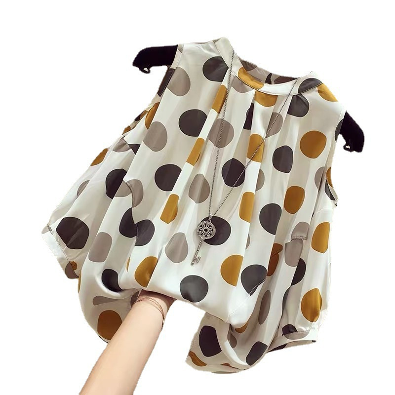 法式别致波点露肩无袖夏季新款减龄小衫洋气设计感别致上衣遮肚子