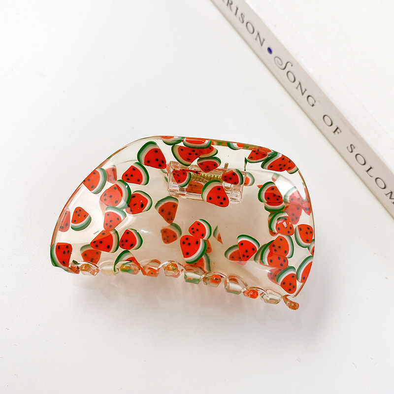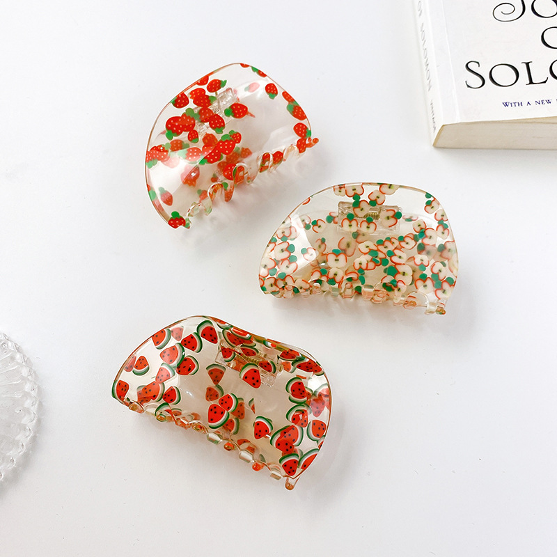 韩版水果系列半圆亚克力抓夹女小清新发夹盘发鲨鱼夹