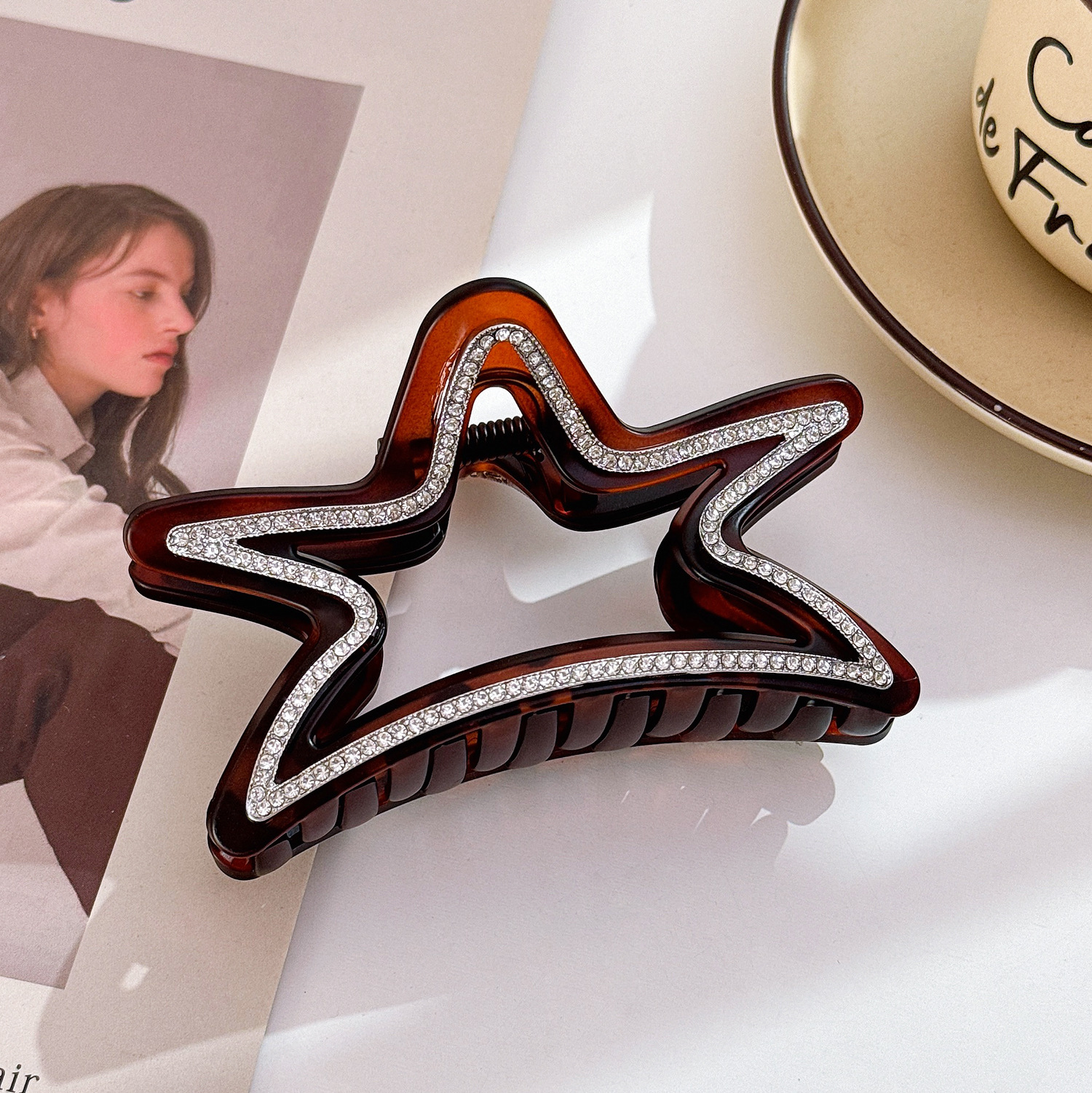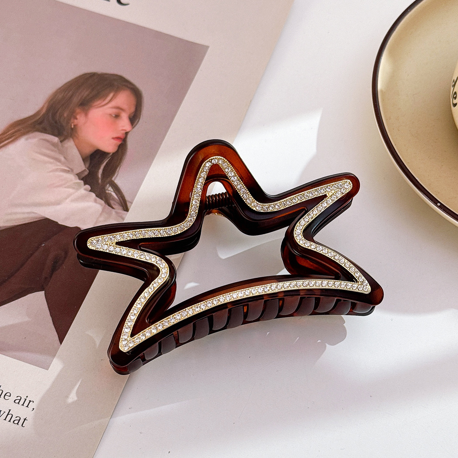 高级感镶钻星星发夹大号加厚后脑勺鲨鱼夹百搭盘发马尾夹