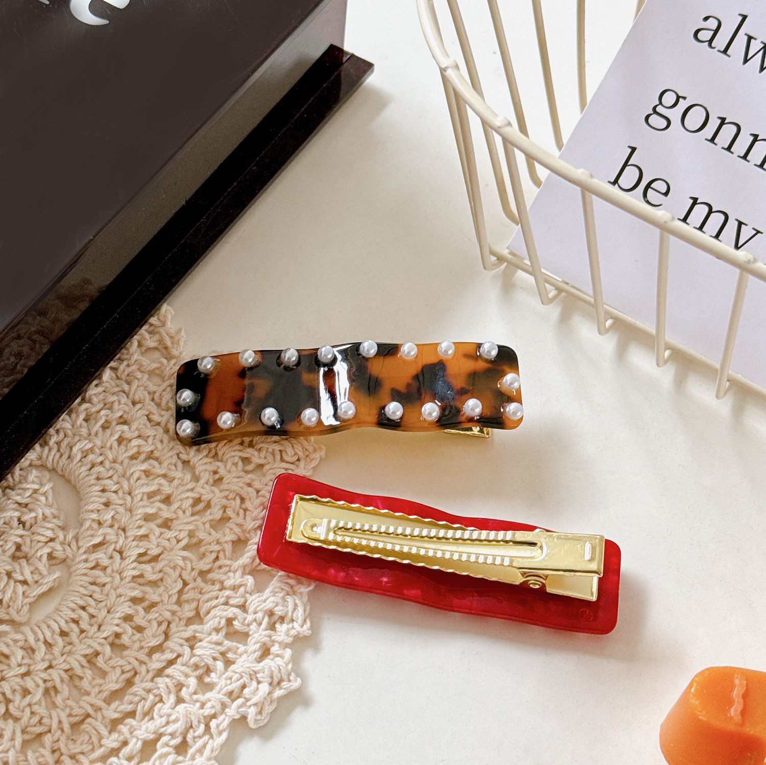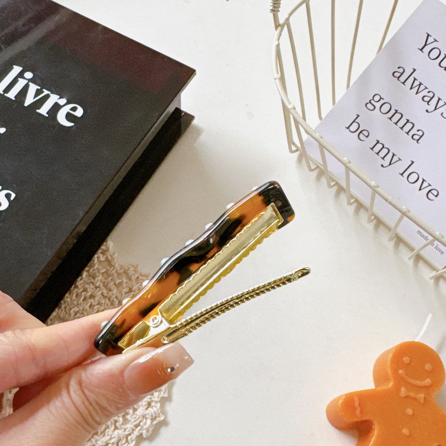 醋酸板材波浪镶珍珠夹子高级感刘海侧边夹百搭马尾鸭嘴夹