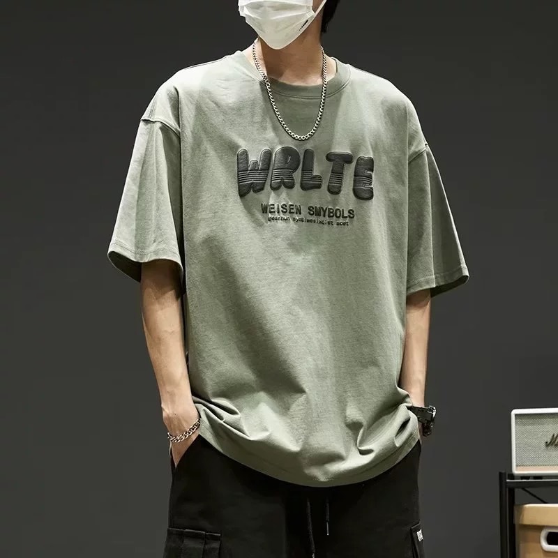 短袖t恤男日系潮牌发泡印花半截袖上衣夏季潮流百搭圆领体恤