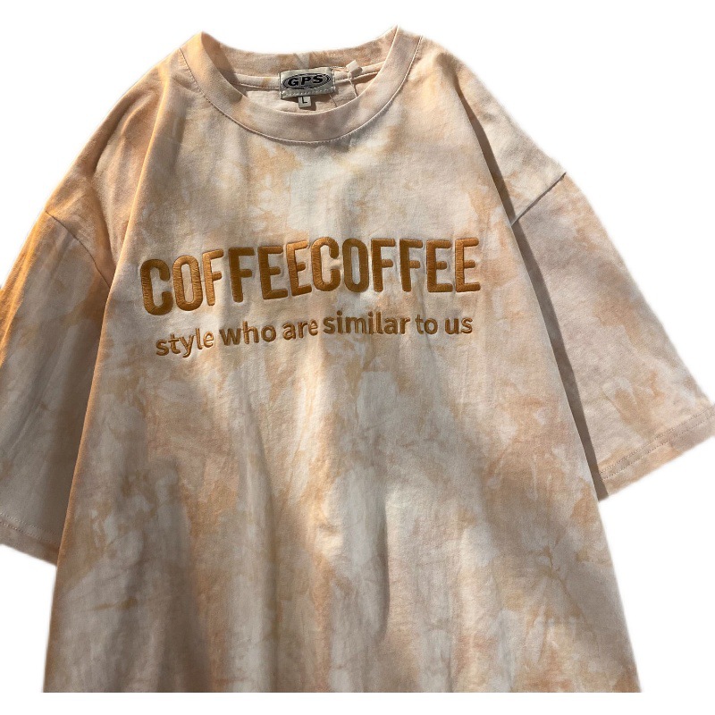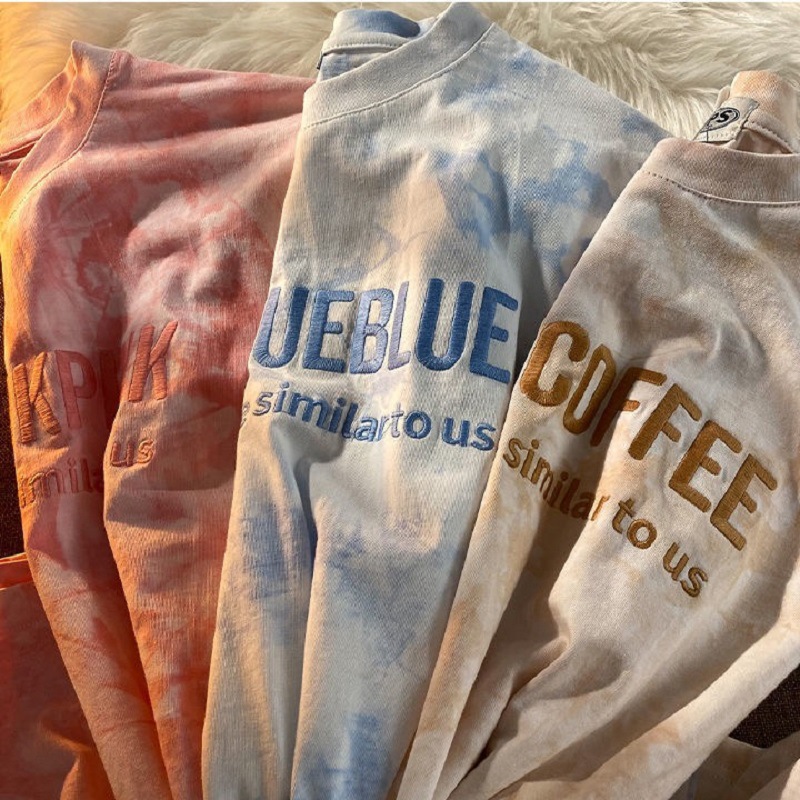 扎染上衣刺绣字母情侣装闺蜜装短袖T恤女夏季宽松打底衫上衣女装