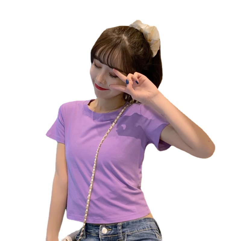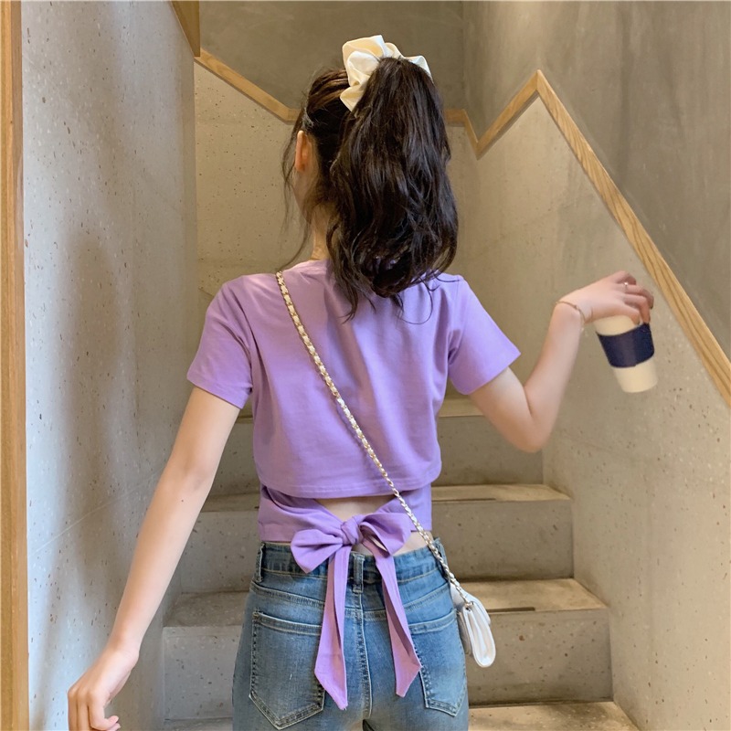 短款时尚短袖T恤女夏季韩版新款修身绑带小心机衣服上衣