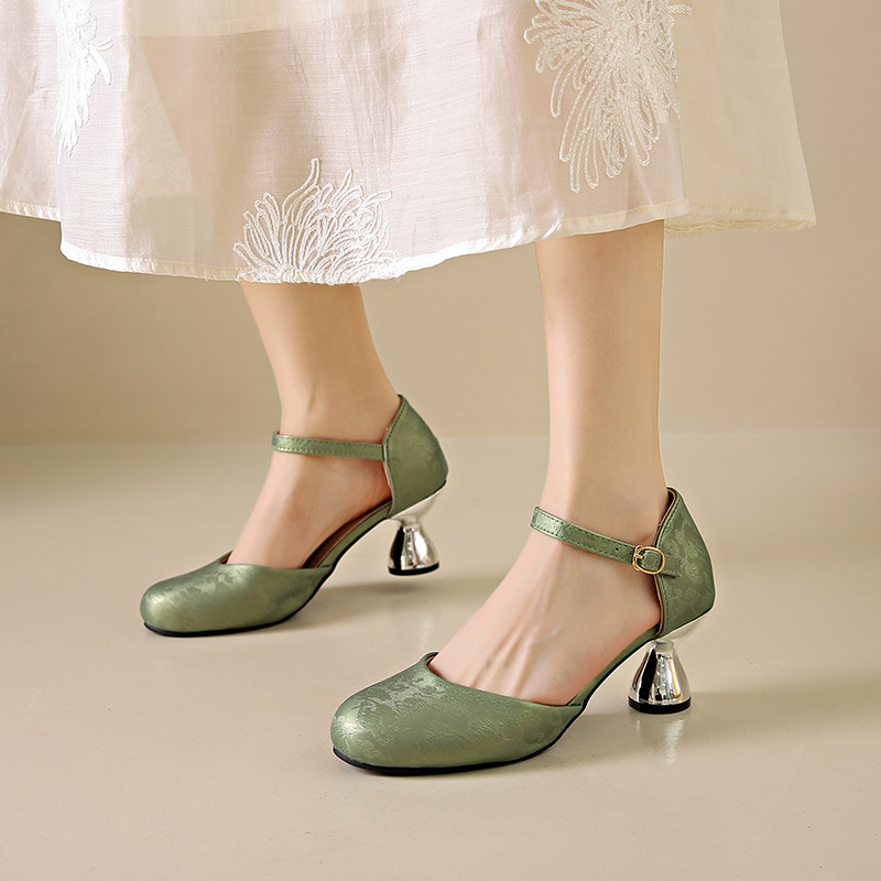 35-43码 大码女鞋夏季国风配旗袍包头凉鞋女新中式复古粗跟高跟鞋