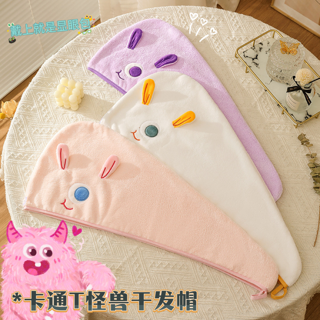 T怪兽珊瑚绒三角包边干发帽绣花加厚干发巾吸水速干浴帽