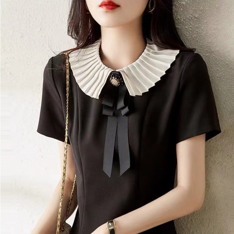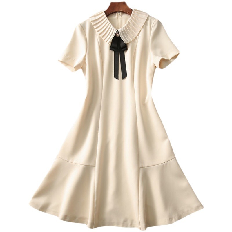 娃娃领短袖连衣裙女装夏季新款淑女荷叶边裙修身纯色鱼尾裙子