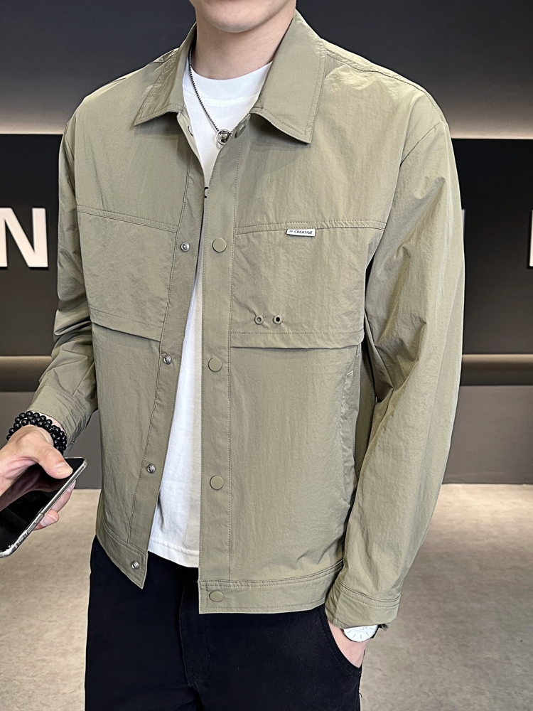 夏季翻领夹克男士冰丝防晒衣2025新款潮牌修身凉感透气户外皮肤衣