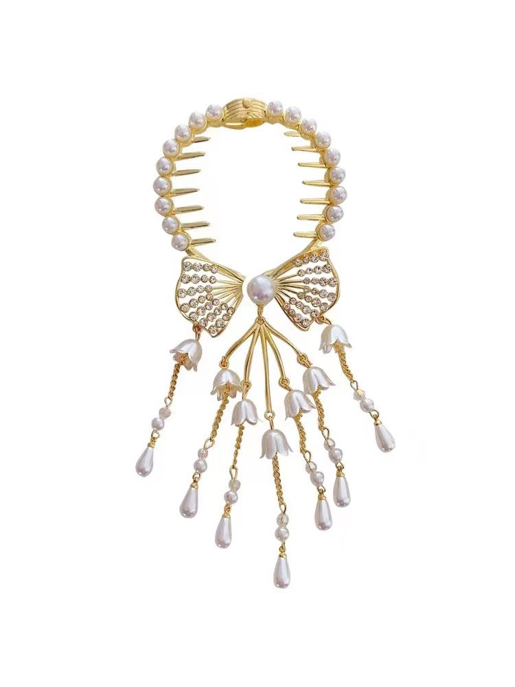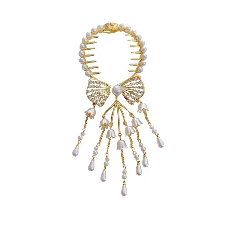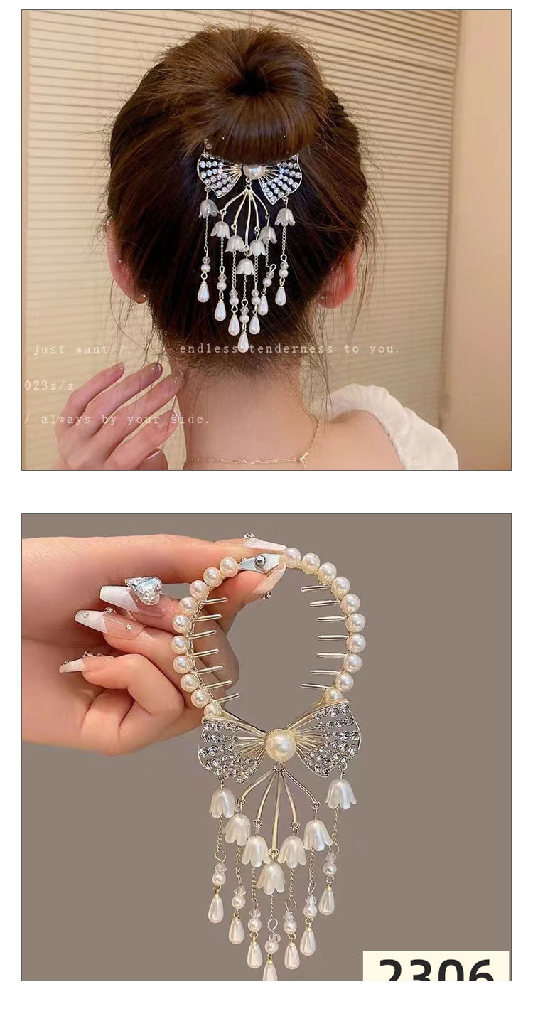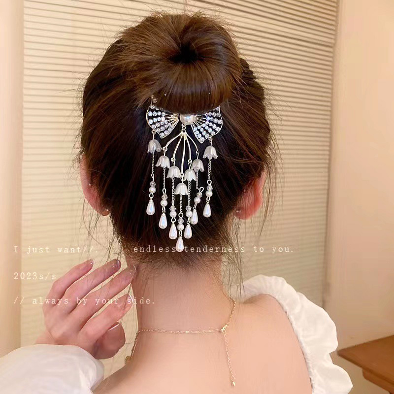 古风铃兰花流苏发夹丸子头固定神器抓夹女高级感发扣半扎盘发发抓