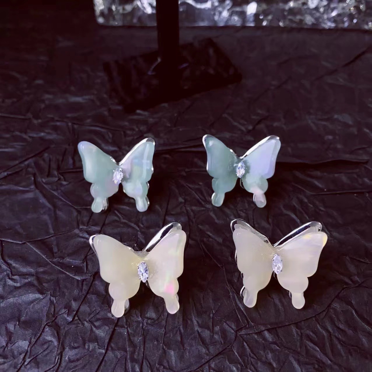 翩翩起舞~高级感轻奢气质水晶蝴蝶耳钉新款夏精致小众耳环女