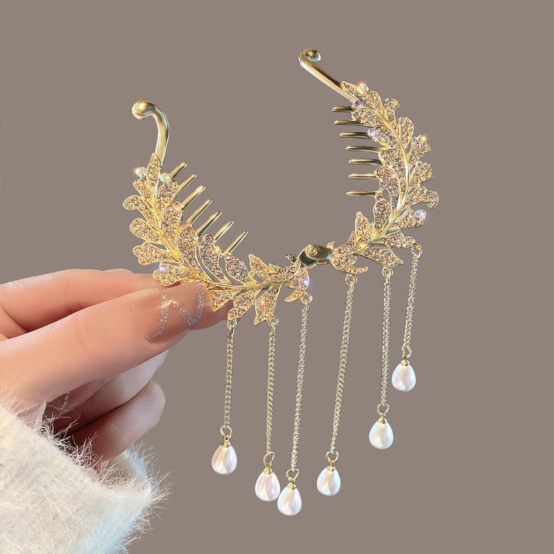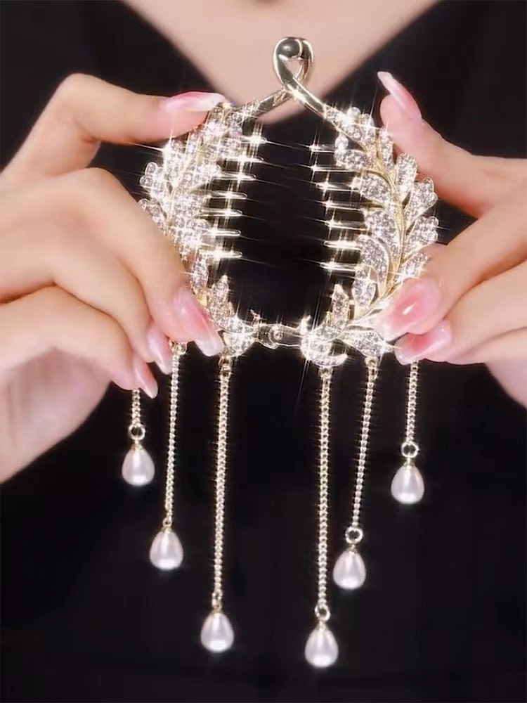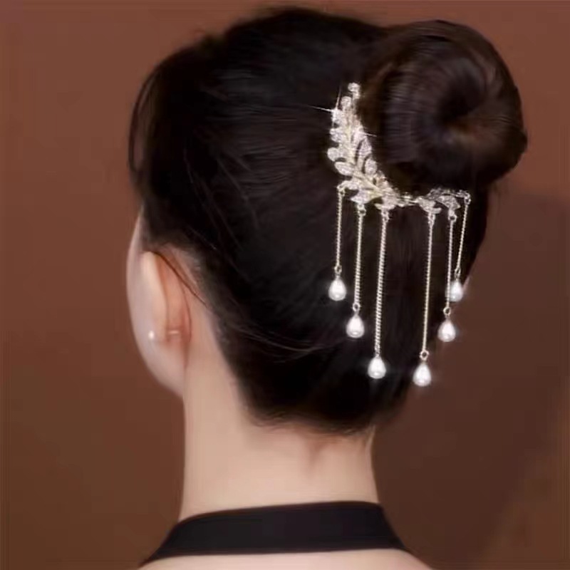 珍珠水钻麦穗流苏发夹后脑勺丸子头盘发神器气质马尾扣夹子头饰