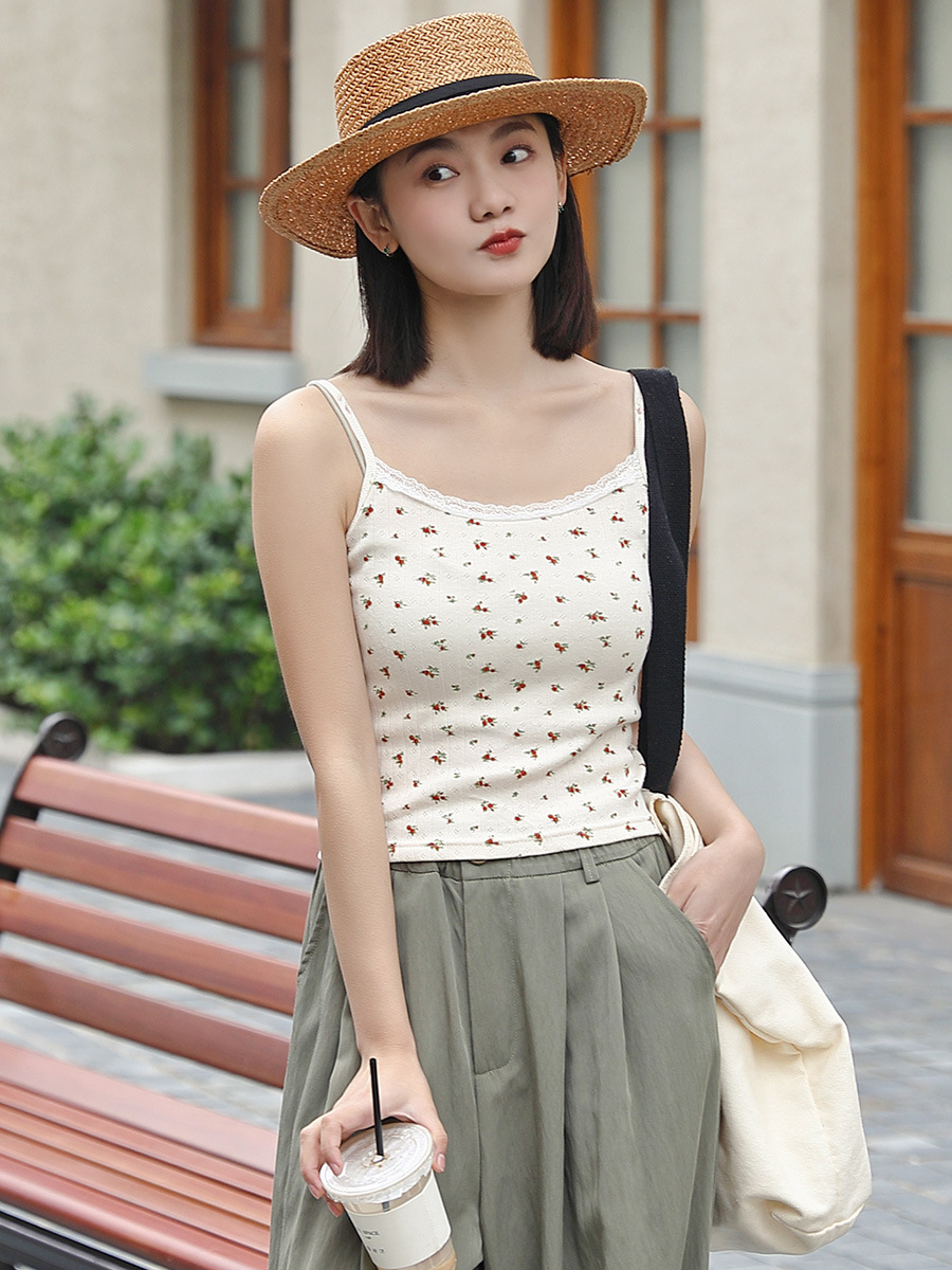 日系甜美清新蕾丝花边纯棉吊带背心女夏季新款内搭上衣