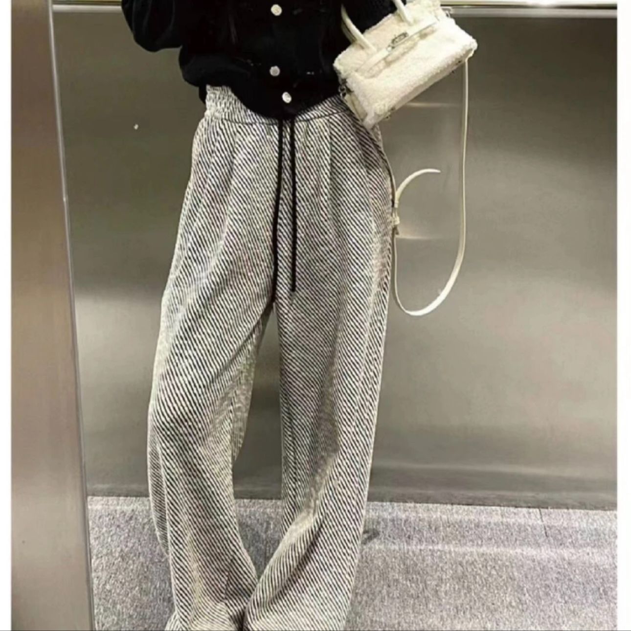 美式斜纹金丝细闪新款春夏秋宽松休闲百搭外穿直筒阔腿裤拖地