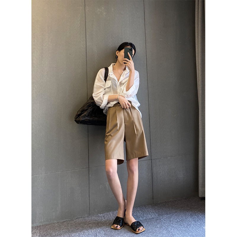 洋气高级感五分休闲西装裤女春夏新款高腰直筒小个子阔腿短裤