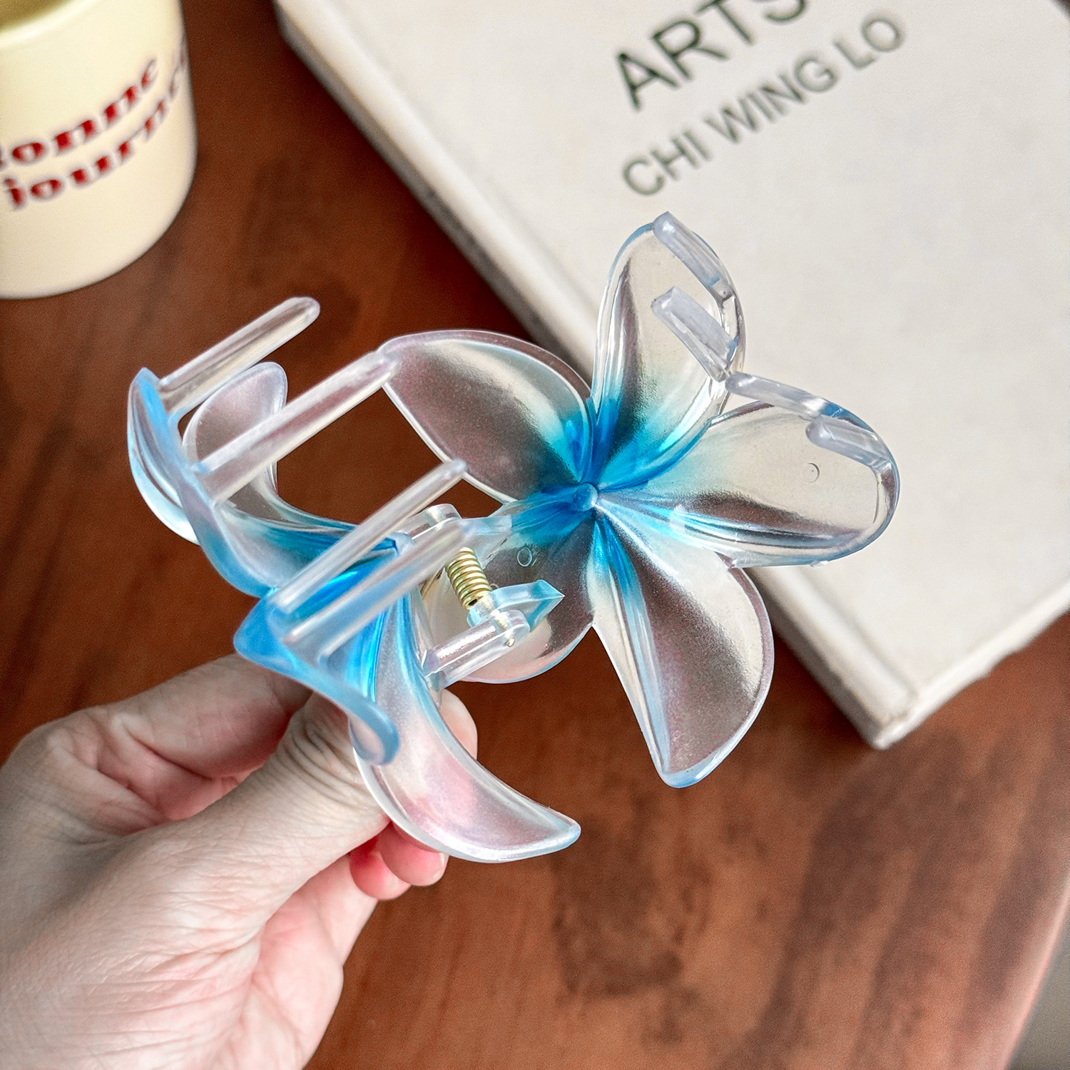 渐变色鸡蛋花抓夹超仙马尾发夹后脑勺百搭高级感鲨鱼夹子