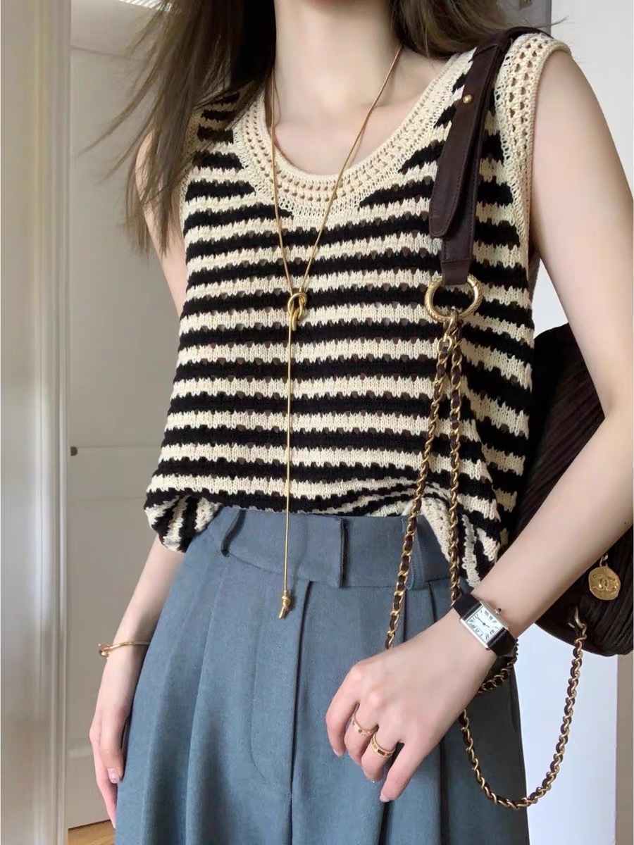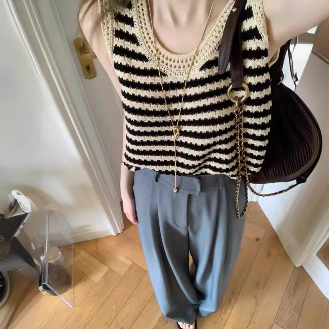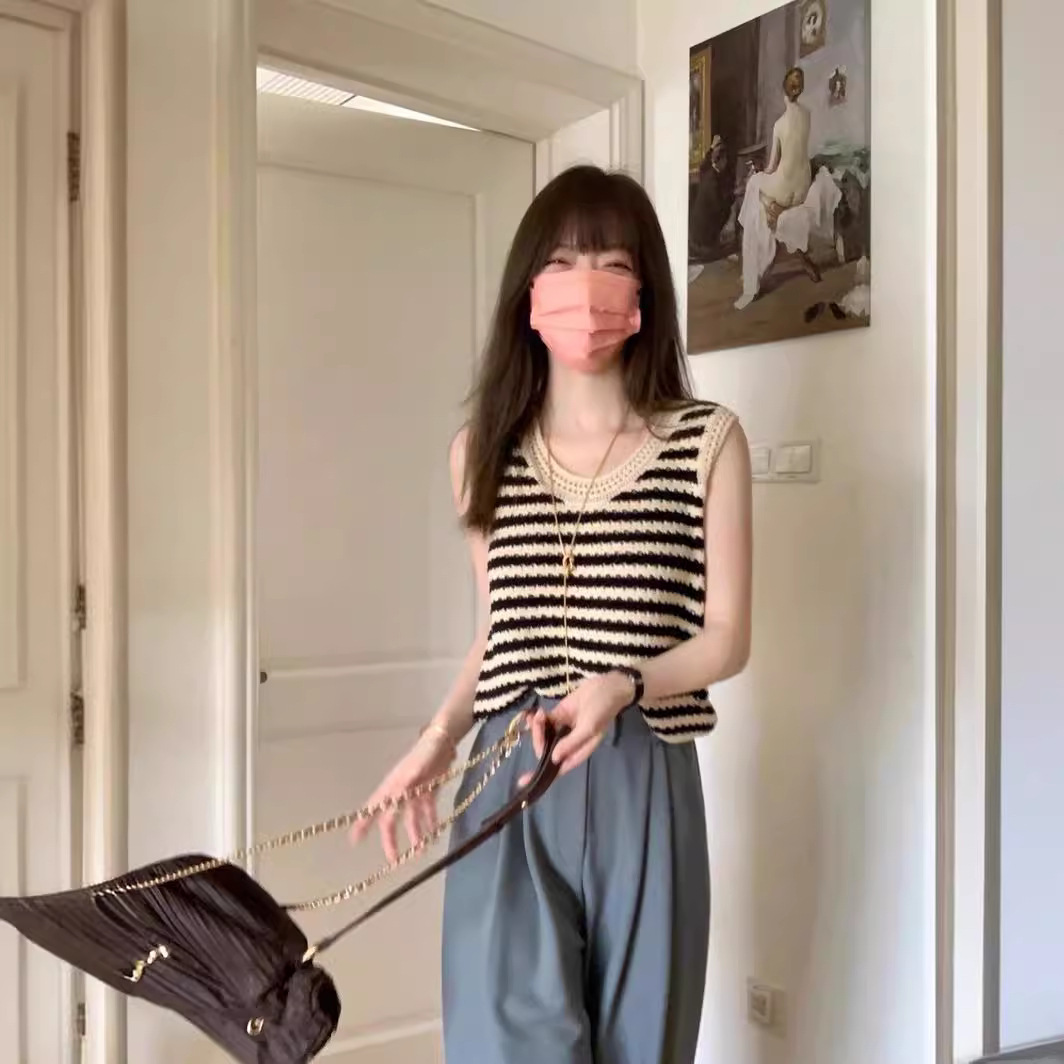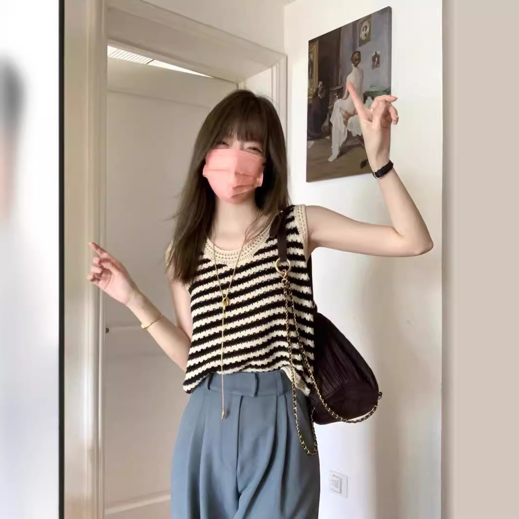 美式条纹针织吊带小背心女夏季外穿设计感小众冰丝坎肩无袖上衣