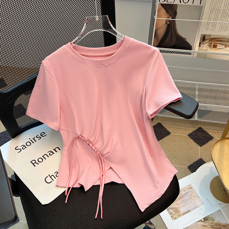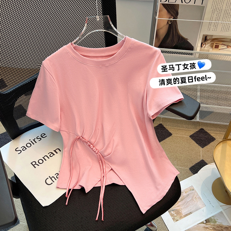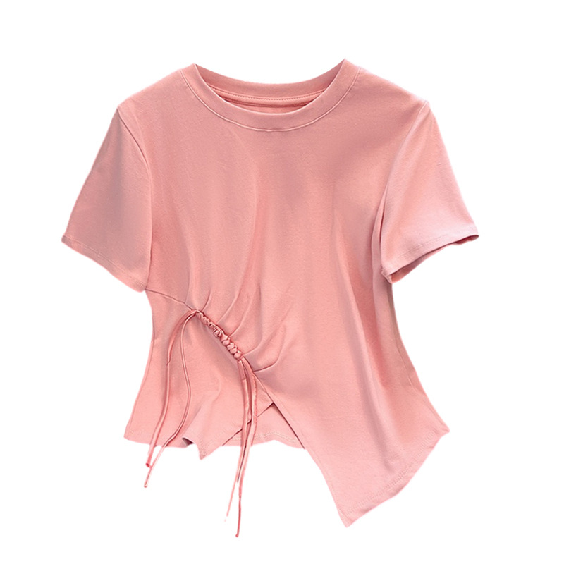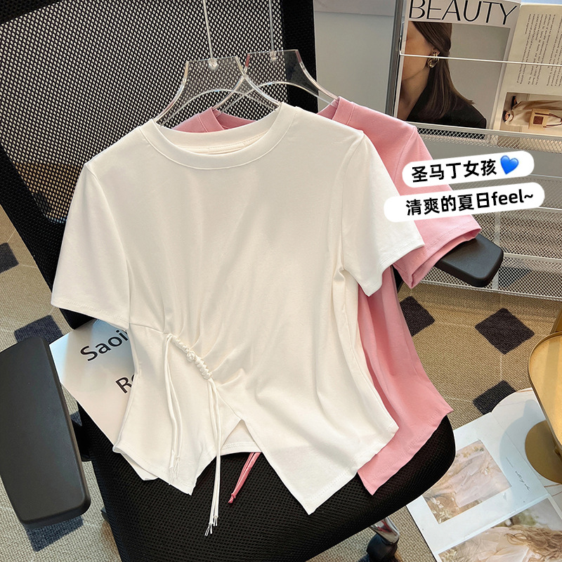 设计感盘扣开叉不规则白色t恤女装夏季新款气质简约宽松短袖上衣