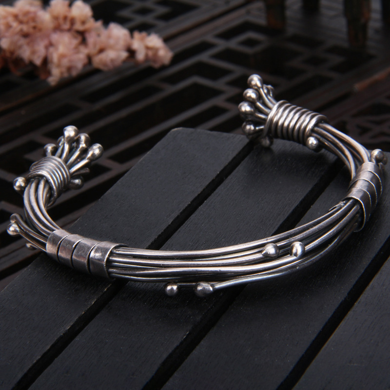 时尚手工银麻花编织手镯开口复古做旧个性民族风手环