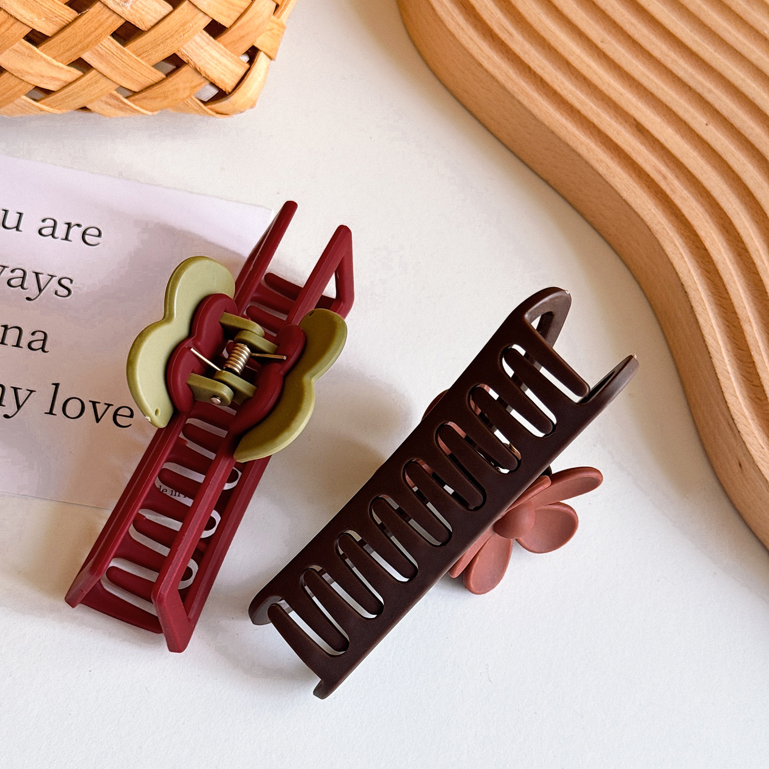 - 花朵+弧形咖色-11.5cm