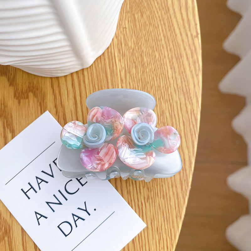 韩版山茶花醋酸抓夹刘海碎发夹后脑勺高马尾夹子甜美发饰