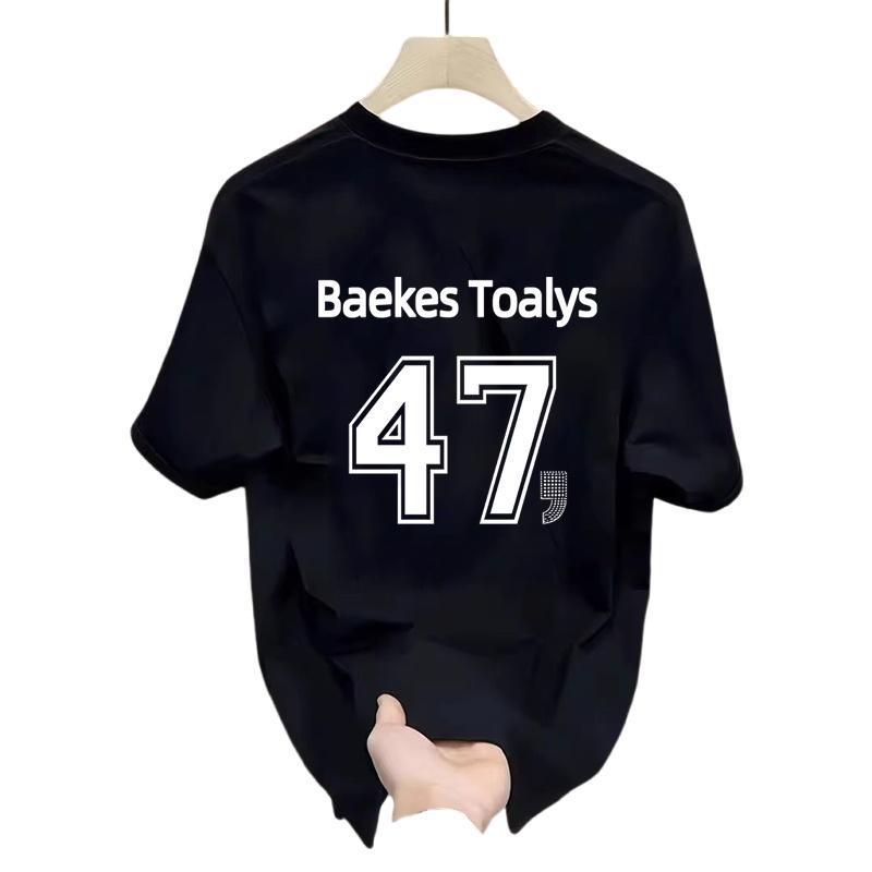数字47字母印花短袖T恤男微宽松纯棉夏季新款潮牌时尚半袖体恤衫