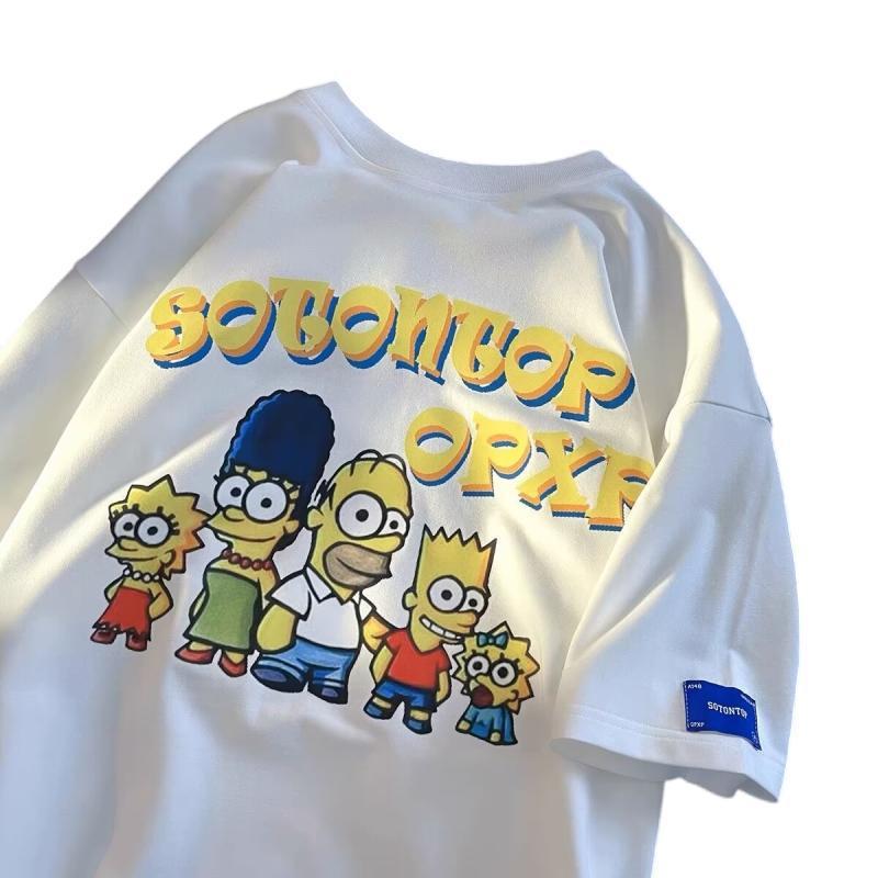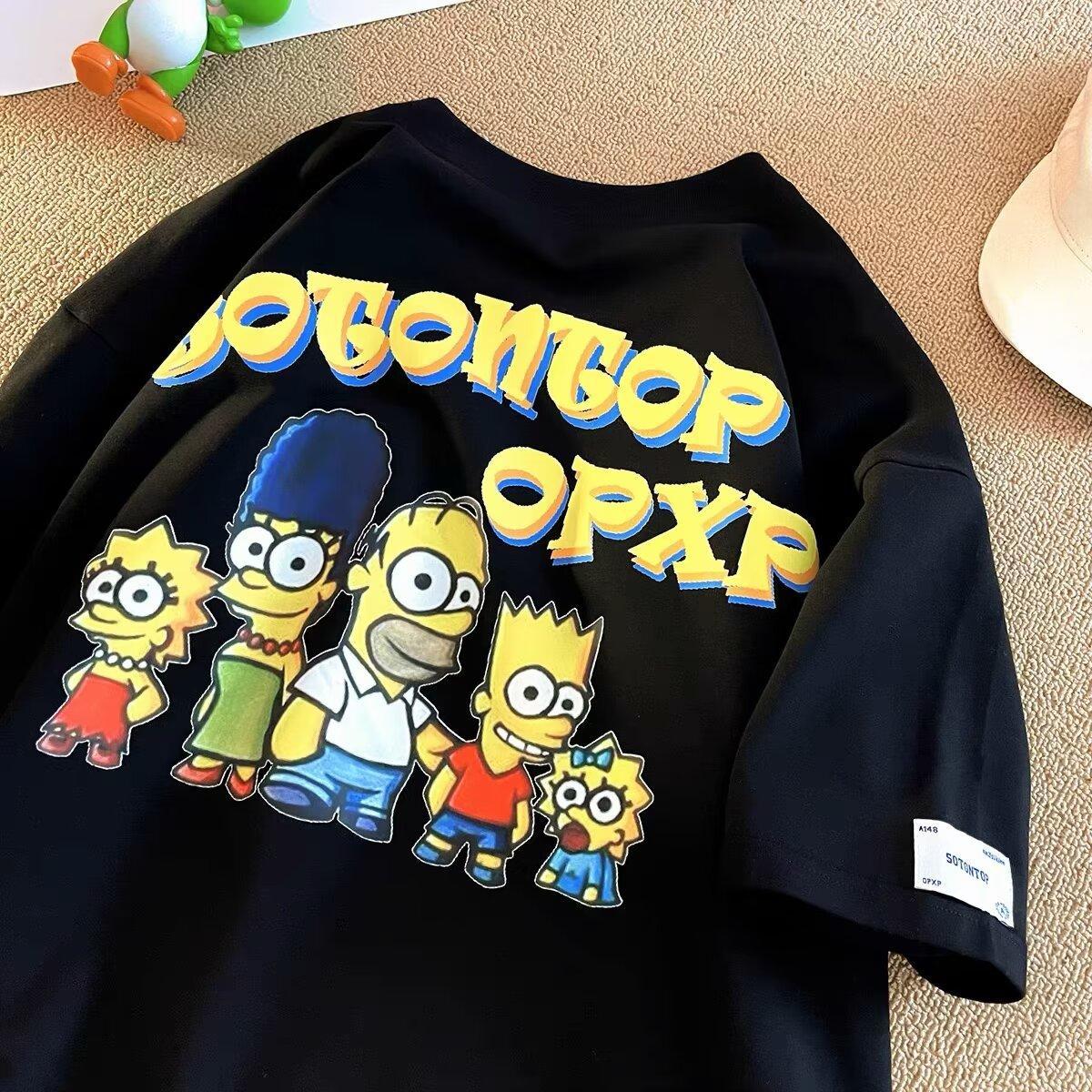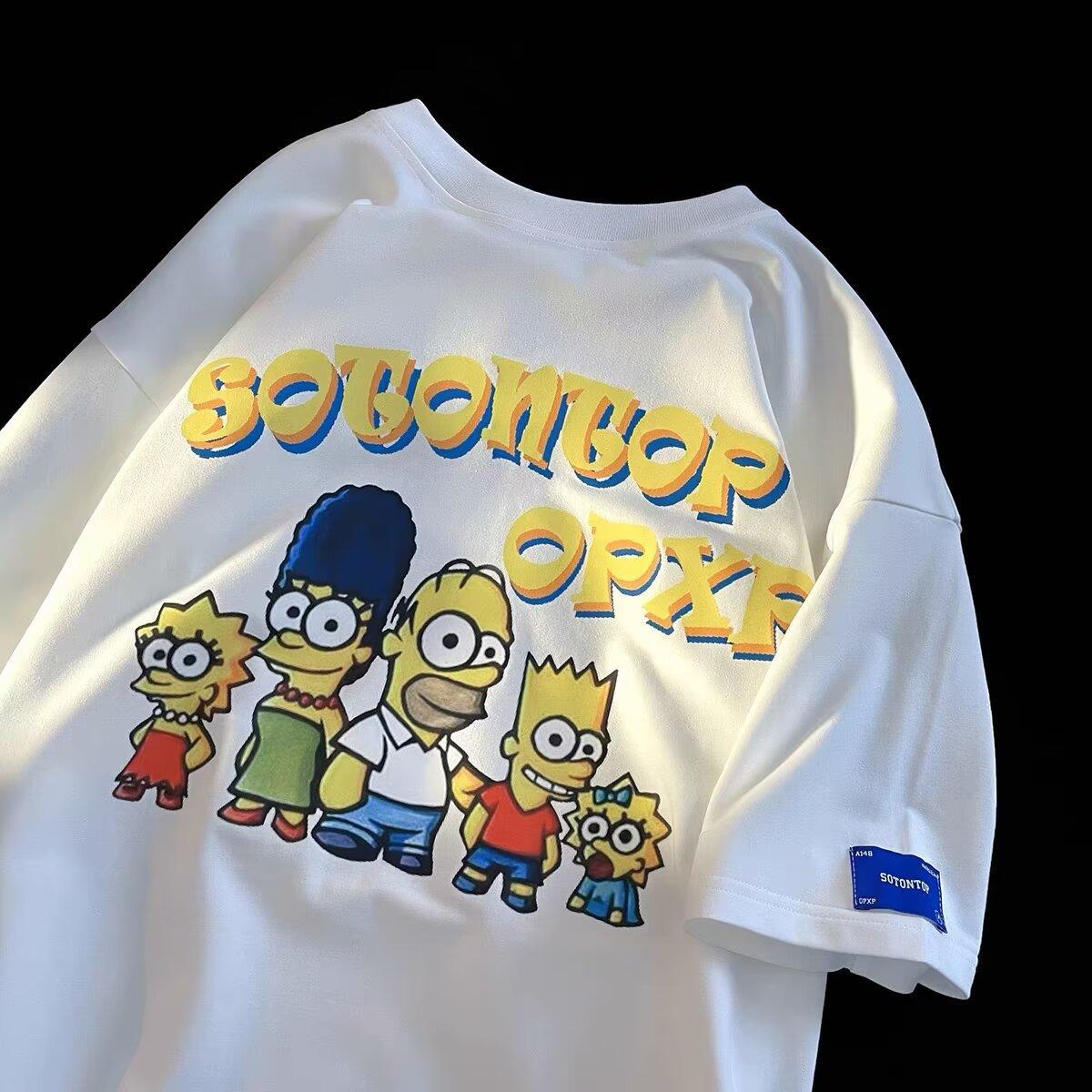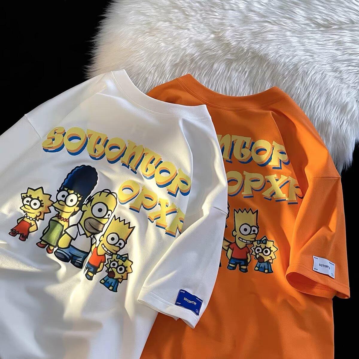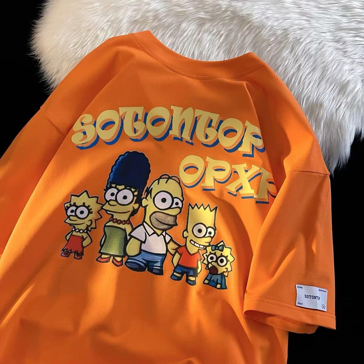 夏季新款短袖t恤男生ins港风高街卡通印花五分袖潮牌半袖休闲上衣