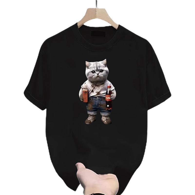 韩系可爱卡通印花纯棉圆领正肩短袖T恤夏原宿风减龄宽松上衣