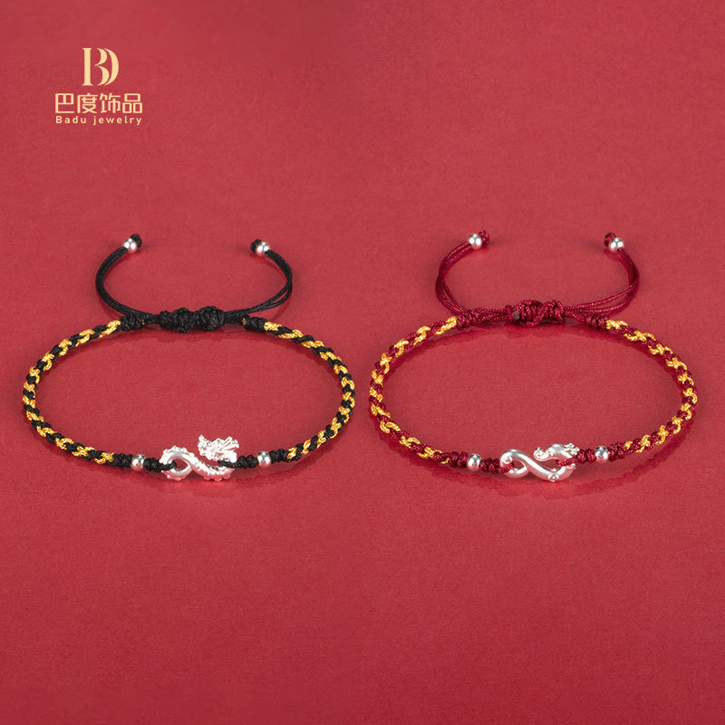 情侣款S999银如意龙生肖编织红绳手链女生黑绳男女款手绳女友礼物