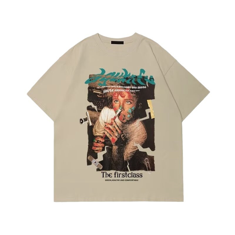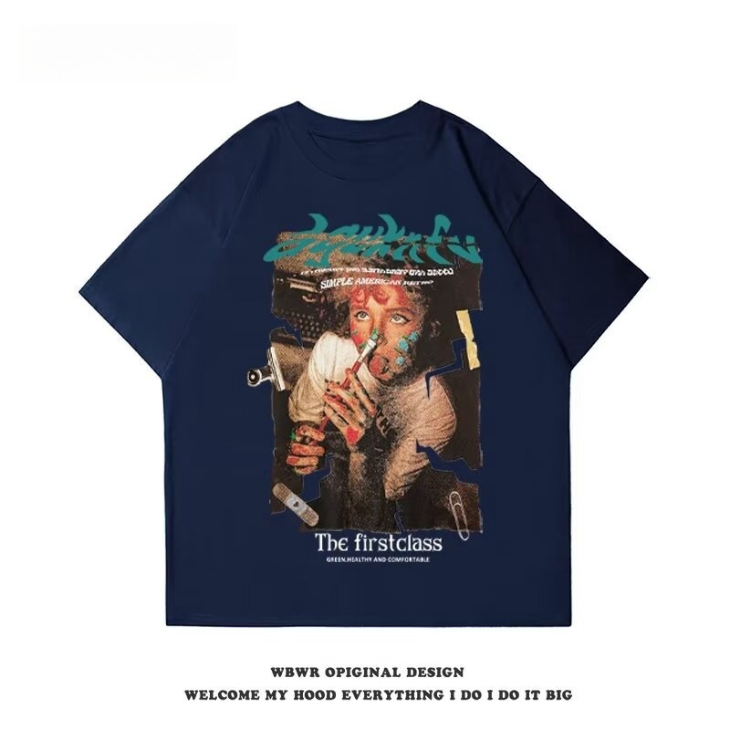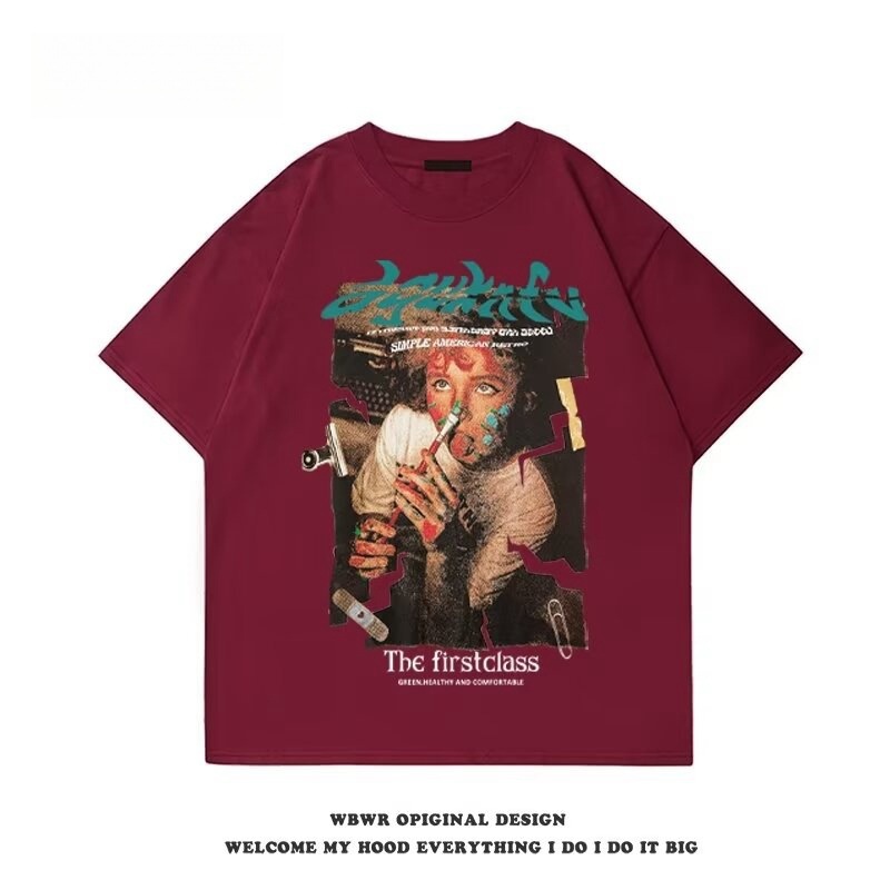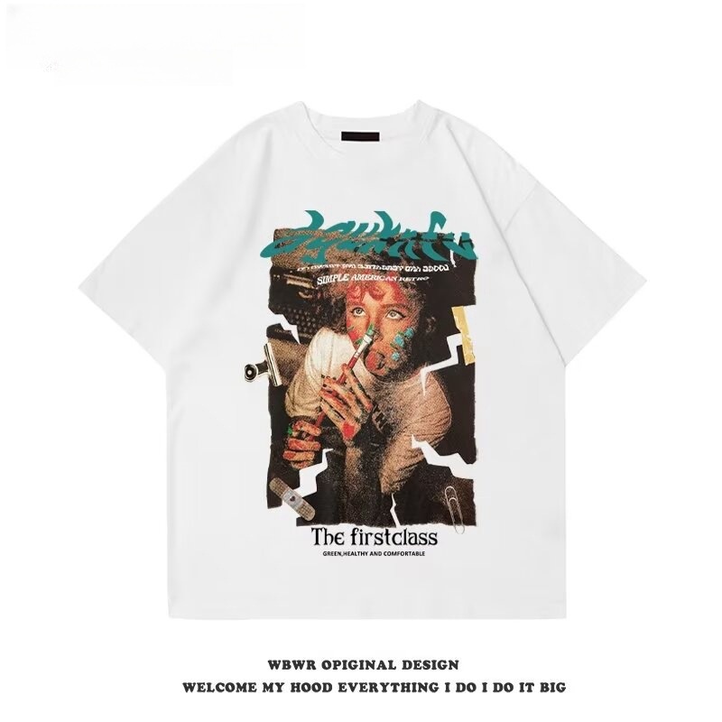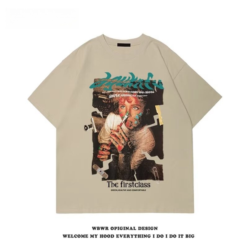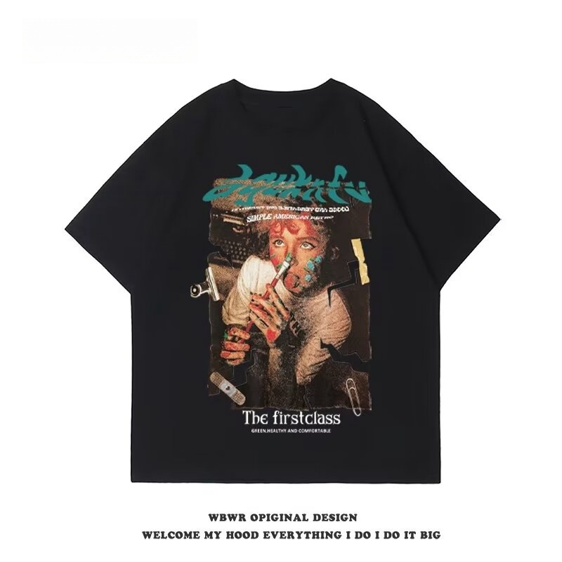 美式复古嘻哈卡通印花短袖T恤男生ins潮牌街头宽松时尚半袖上衣服