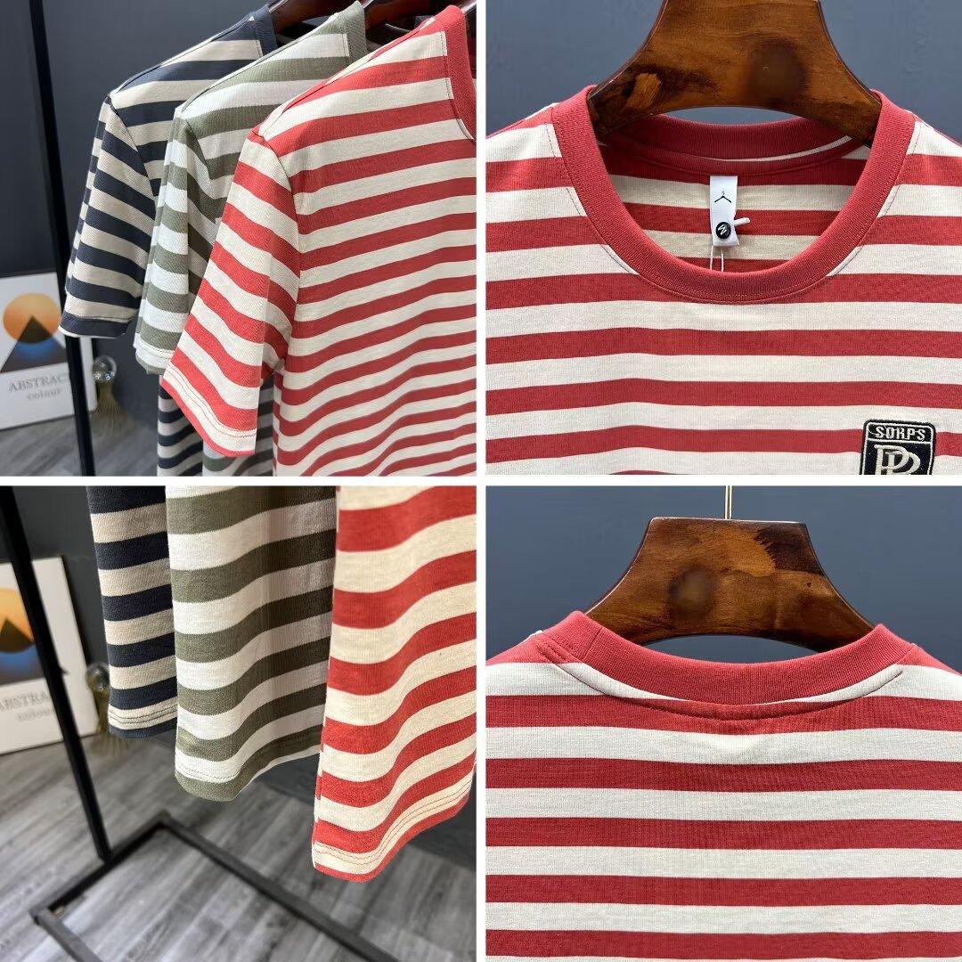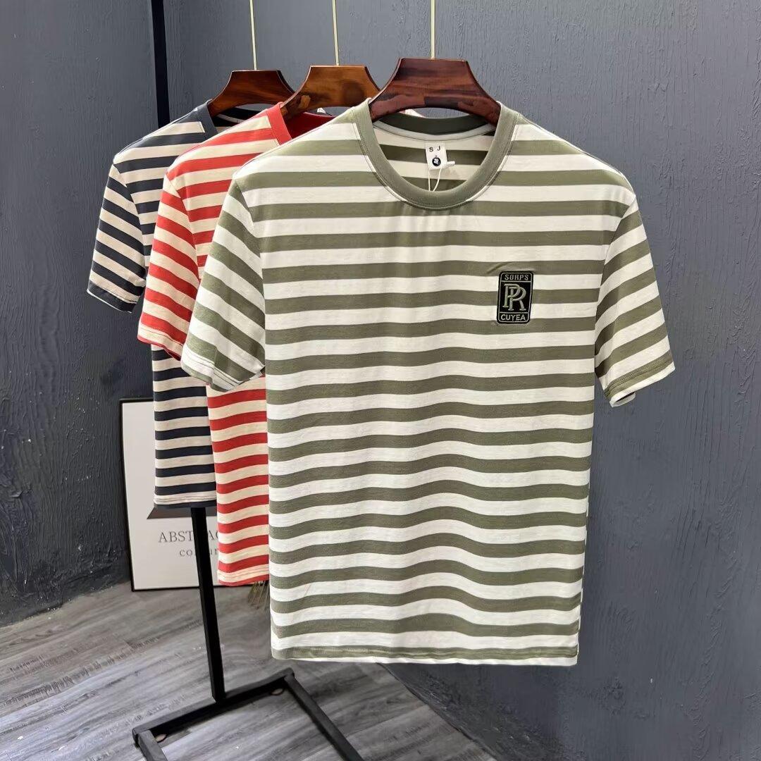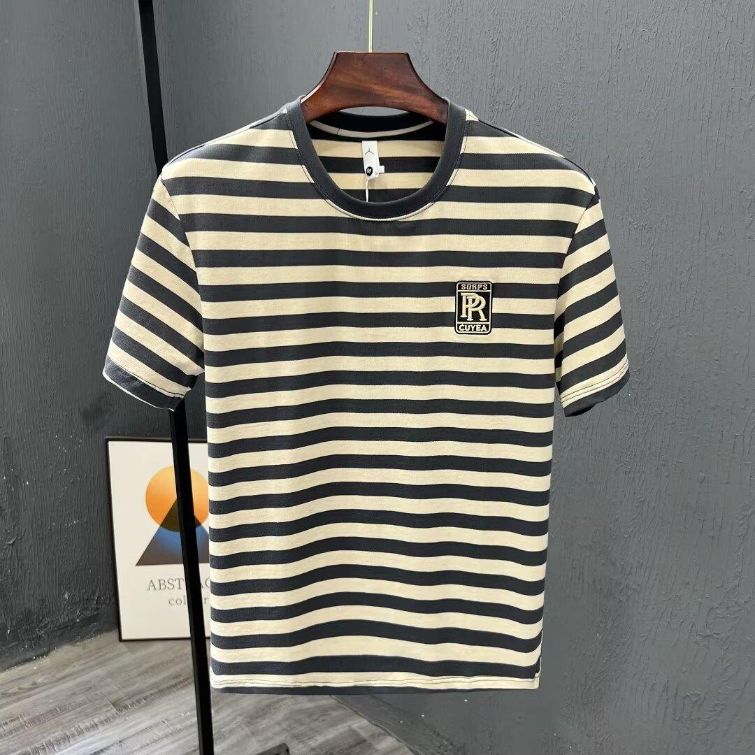 夏季条纹T恤ins潮牌短袖新款男装痞帅时尚百搭休闲修身上衣服