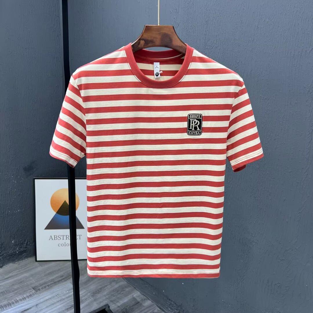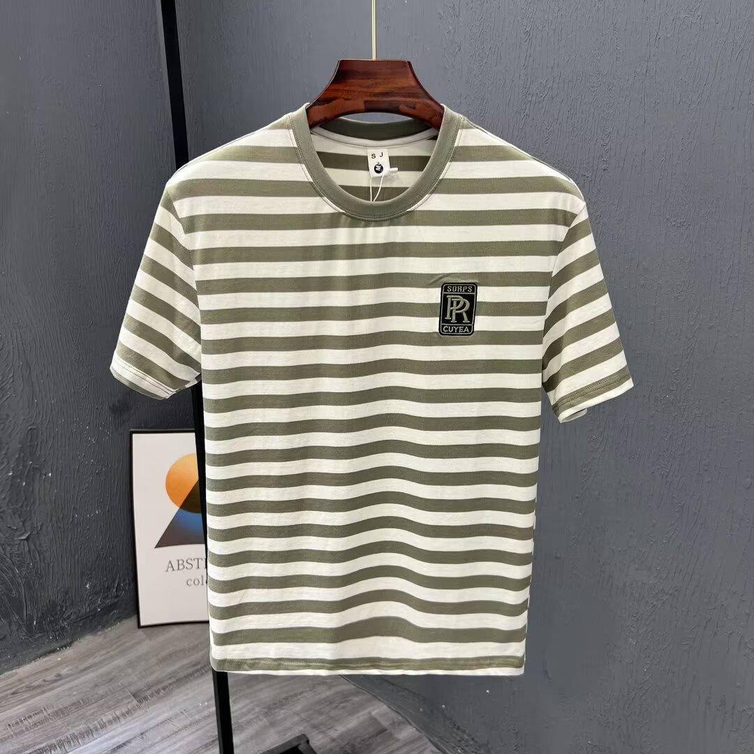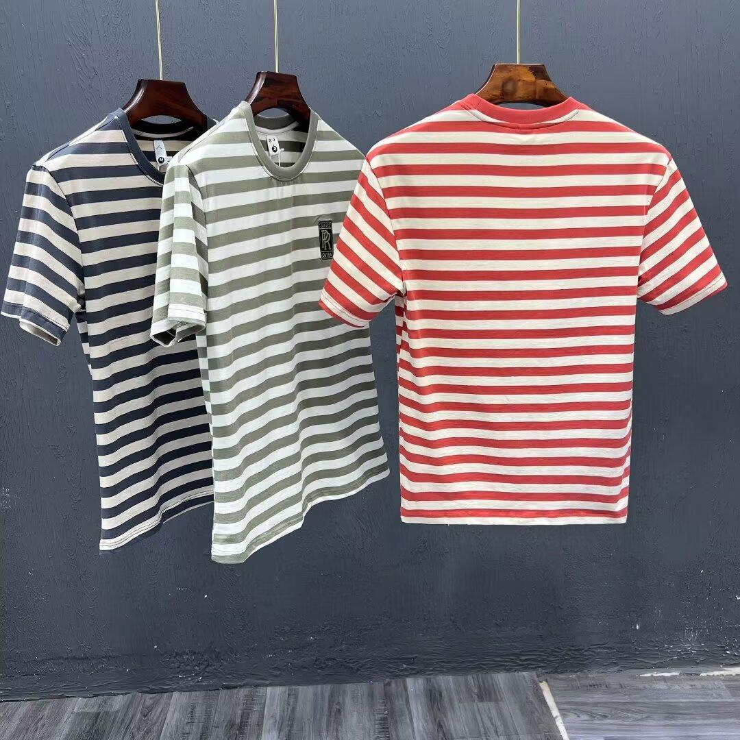 夏季条纹T恤ins潮牌短袖新款男装痞帅时尚百搭休闲修身上衣服