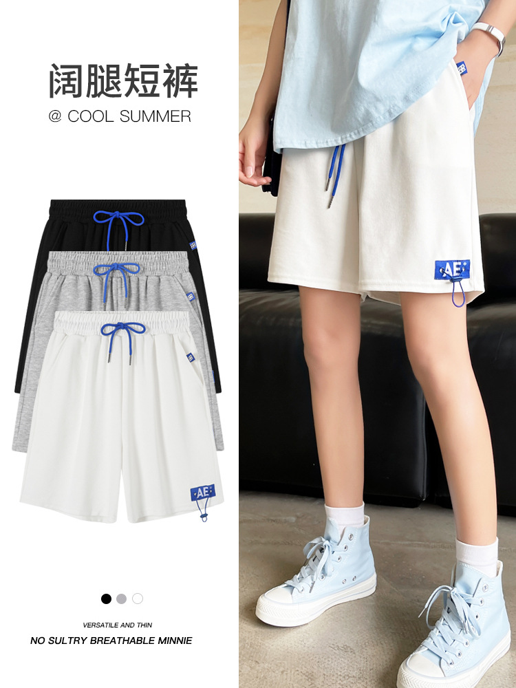 夏季高腰显瘦阔腿短裤女高级感宽松休闲直筒五分裤小众运动热裤潮