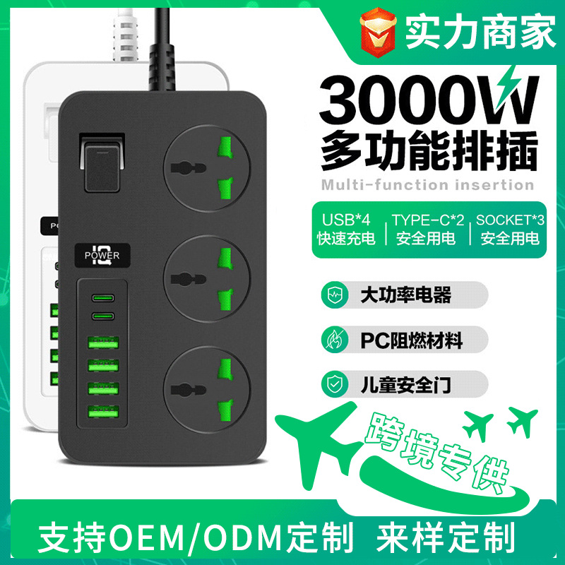 全球通250V插排带线usb插排办公家用插线板 英美规大功率智能插排