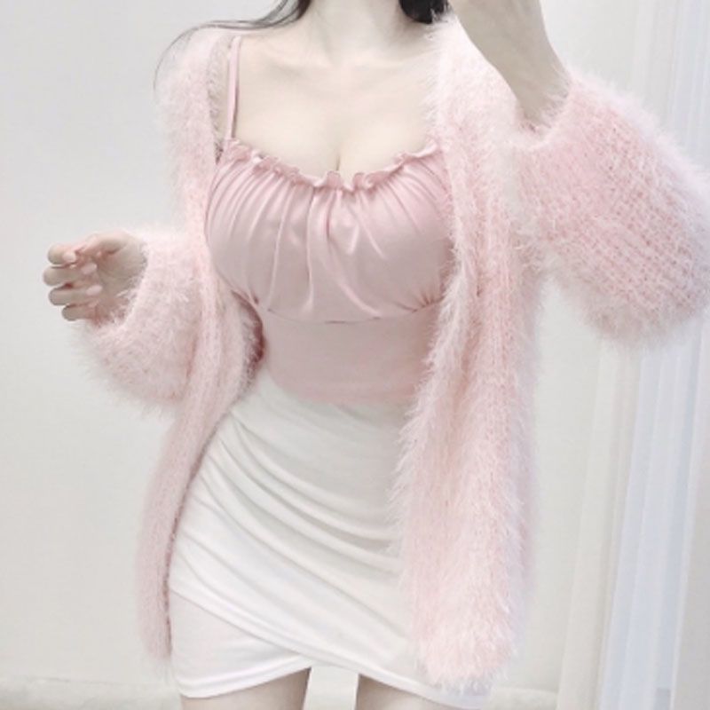 【跨境批发】甜辣气质显瘦上衣木耳边褶皱显胸大性感修身吊带背心