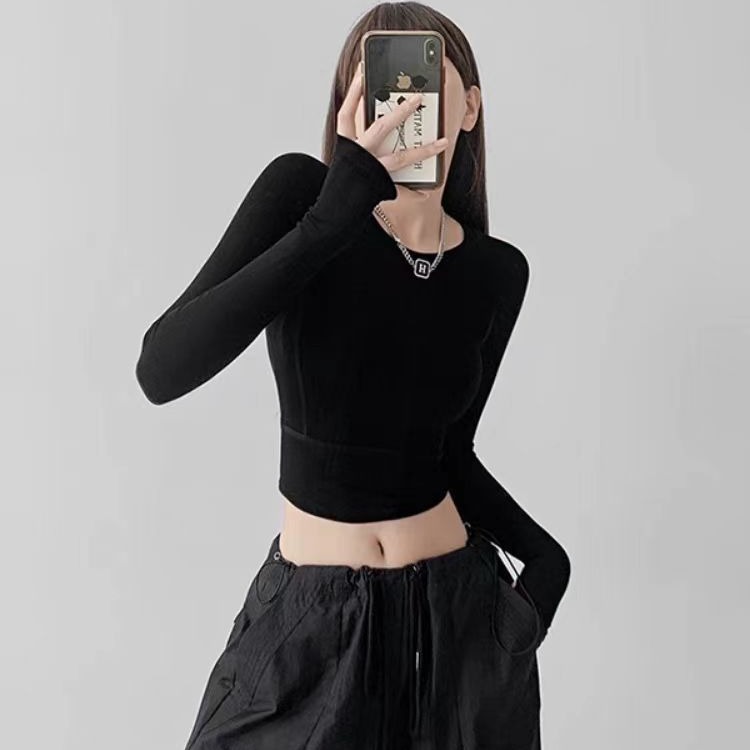 短款修身长袖上衣春季新款性感T恤女显瘦运动打底衫辣妹短T