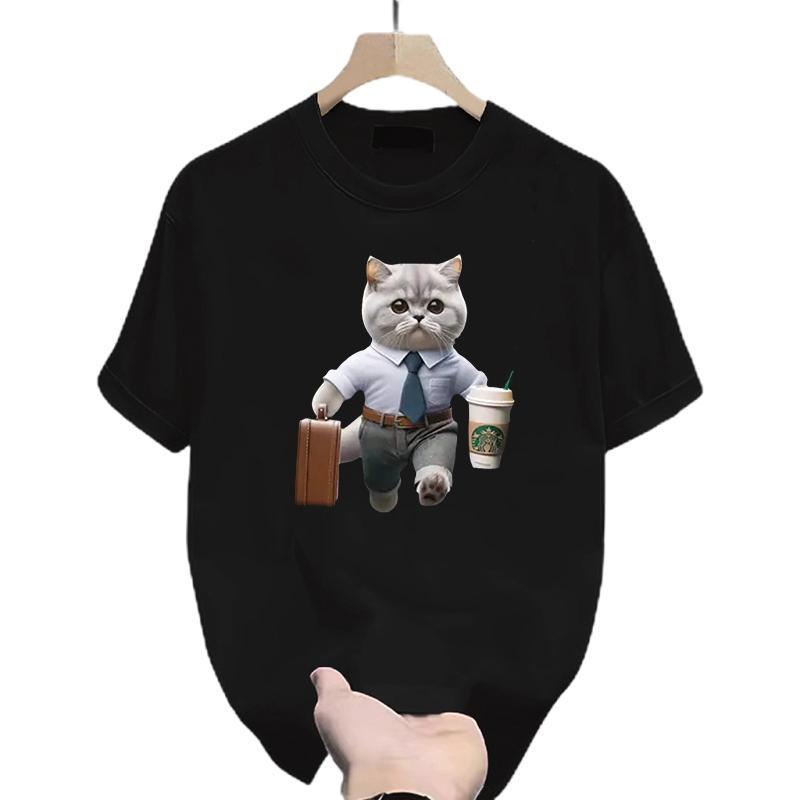 可爱流行卡通印花宽松情侣装短袖t恤女夏季圆领ins潮牌百搭上衣服